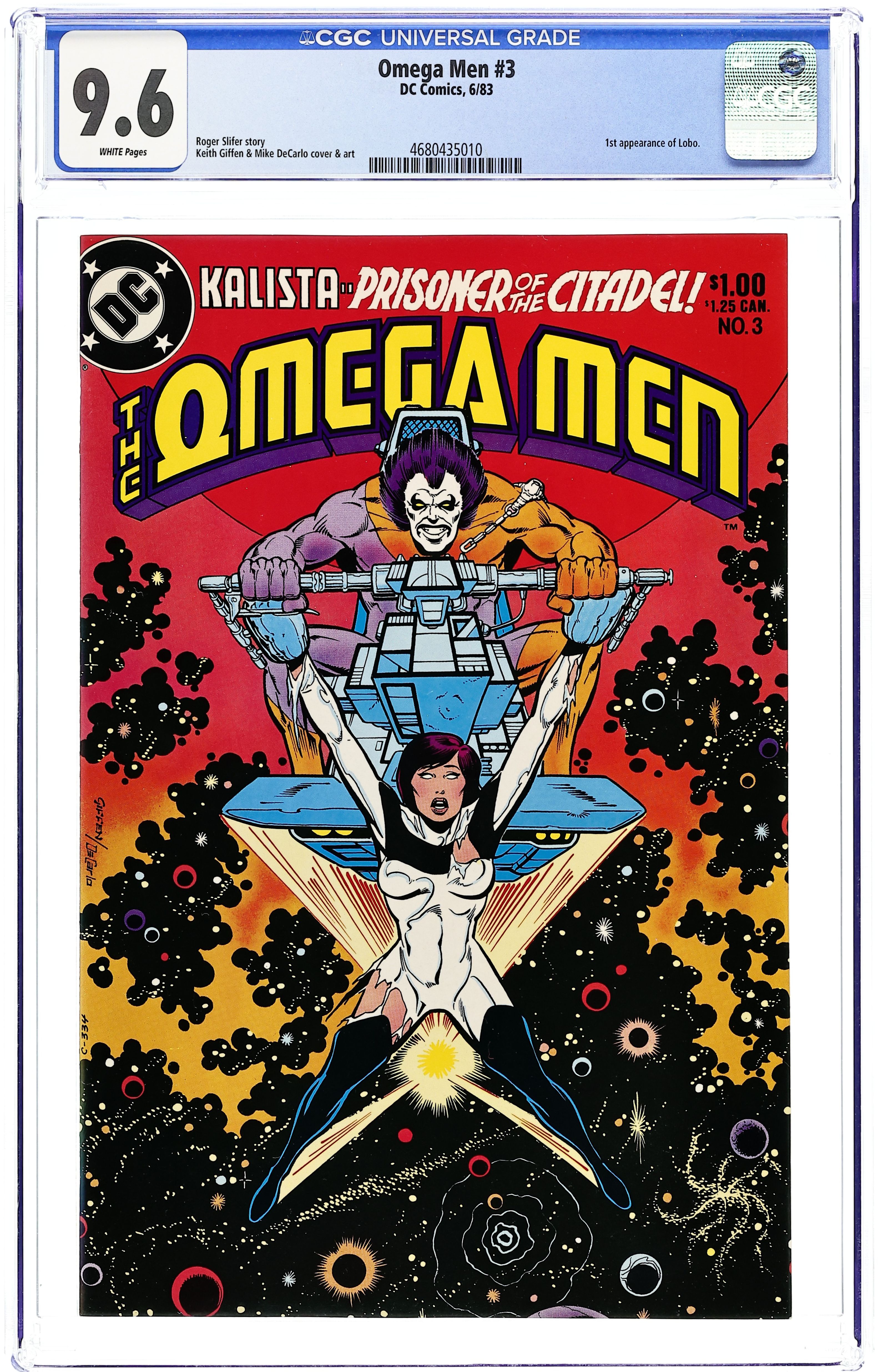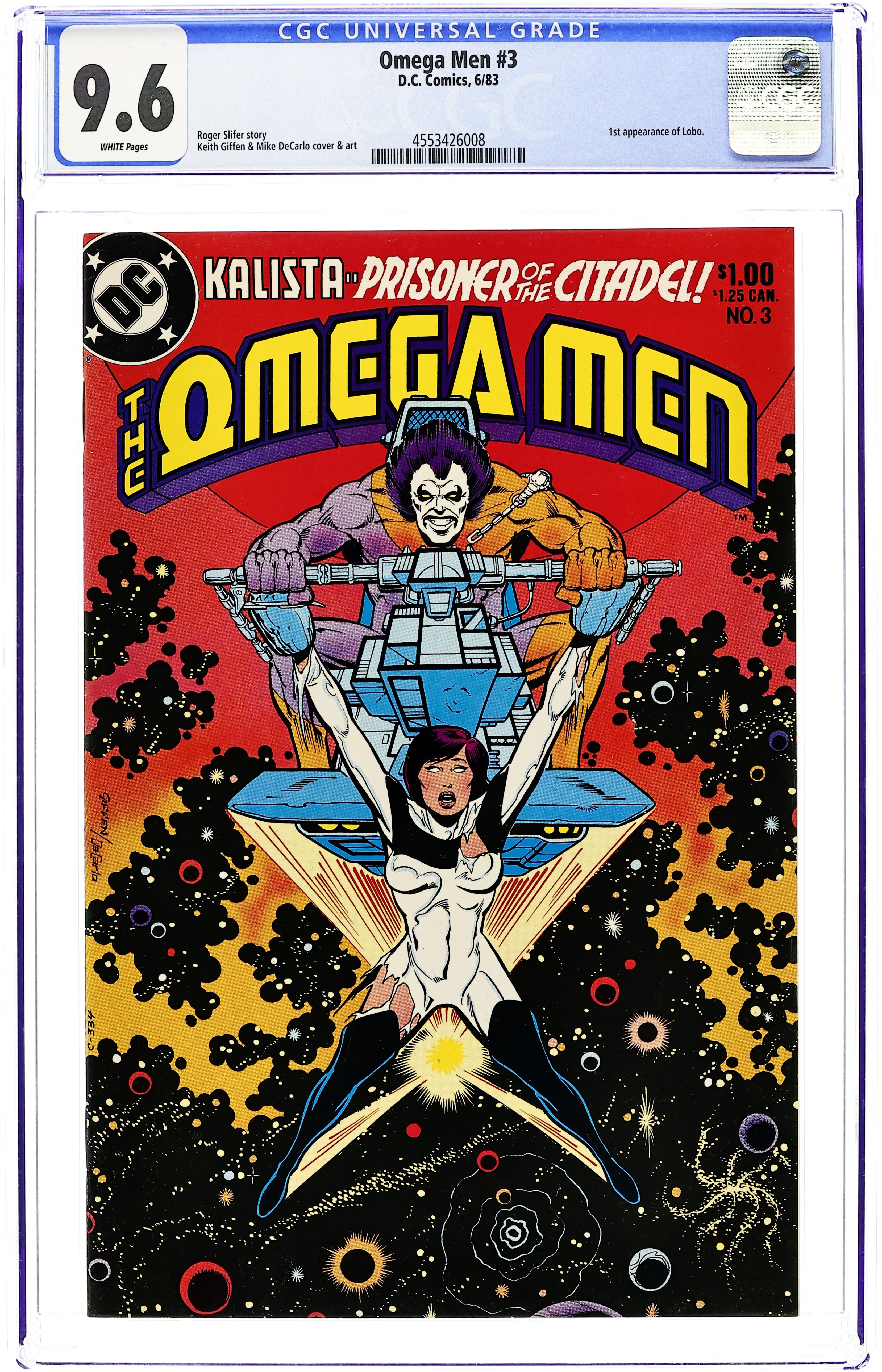 Ends Apr 16 8:48 PM CST Bid History 1 bid Current Bid $1 Your Secret Max Bid If you'd like to bid, please log in or register. First appearance of Lobo. "Assault on Euphorix." Harry Hokum interrogates Kalista. The Omega Men try to keep the Citadel from taking over Euphorix. Chapter two of the Citadel War. Script by Roger Slifer, pencils by Keith Giffen, inks by Mike DeCarlo. Cover by Giffen and DeCarlo. Cover price $1.00.