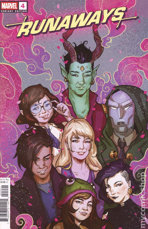 (W) Rainbow Rowell (A) Elena Casagrande (CA) Stephanie Hans REUNITED RUNAWAYS…FOR NOW? Will Alex and the Runaways be able to put aside their differences and make peace in the face of DOOM? Will Karolina have a change of heart about the Staff of One when the chips are down? Will Chase be able to look past his anger at Gert? AND WHAT DOES THE FUTURE HOLD FOR THE RUNAWAYS? All this and more in the heartbreaking finale! 32 pages, full color, rated T+. Cover price $3.99.
