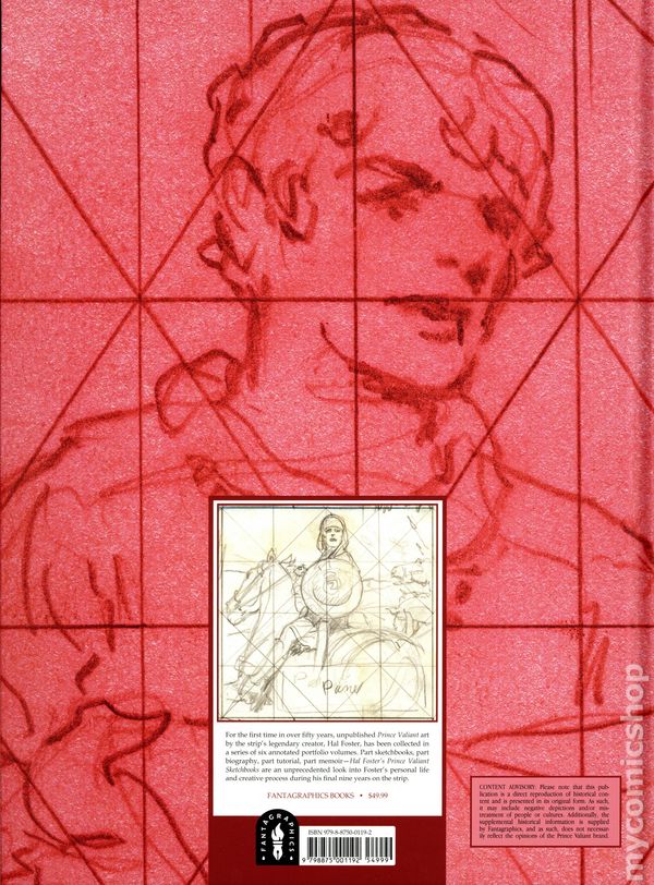 1st printing. Text by Hal Foster and Brian M Kane. Art and cover by Hal Foster. In the works for several years, HAL FOSTER'S PRINCE VALIANT SKETCHBOOKS: AN ILLUSTRATED MEMOIR presents never-before-published Prince Valiant art by the strip's legendary creator, Hal Foster, collected in a series of six annotated portfolio volumes. Part sketchbooks, part biography, part tutorial, part memoir—Hal Fosters Prince Valiant Sketchbooks is an unprecedented look into Fosters personal life and creative process during his final nine years on the strip. It's also a fascinating look behind the curtains as Foster coached and interacted with his chosen successor: John Cullen Murphy. Produced with the full permission and participation of the Foster and Murphy families, this series is a testament to author and Prince Valiant historian Brian M. Kanes research prowess and determination to bring Hal Fosters creative process to light. This uniquely intimate view of Foster's creative process is a long-awaited dream come true for Prince Valiant fans. Over the course of these volumes, Kane annotates with painstaking clarity and thoroughness 366 penciled layout pages, 40 character sketches, and 577 text pages of Fosters descriptions and instructions for each panel. Also featured are an additional 143 pieces of art, mostly by Foster, 100 photographs detailing his life and career, and 123 personal letters and notes, all adding immeasurably to this exploration of Fosters life and art, as well as his collaboration with Murphy. Hardcover, 10 1/2-in. x 14 1/2-in., 112 pages, B&W. Cover price $50.00.