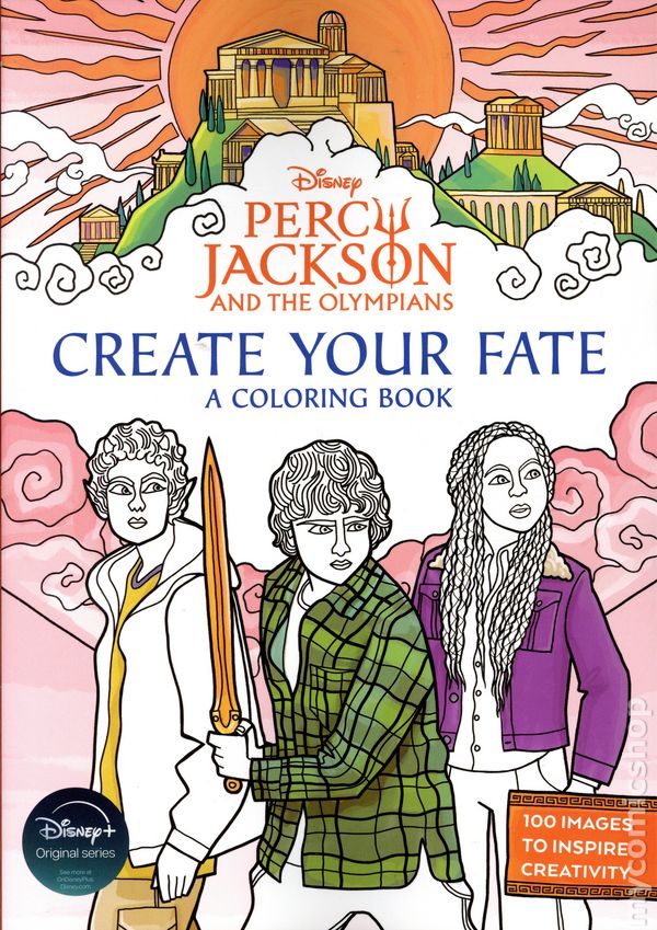 1st printing. Art and cover by Andre Ducci. A new coloring book based on the hit Disney+ Original Series, Percy Jackson and the Olympians. This brand-new Percy Jackson coloring book allows you to explore your creativity—while immersed in the world of gods, demigods, and monsters! From notable Camp-Half Blood campers to fearsome creatures and mysterious gods, find all of your favorites from the hit Disney+ show in this interactive coloring book, perfect for Percy Jackson fans of all ages. Softcover, 8-in. x 11-in., 128 pages, B&W. Cover price $15.99.