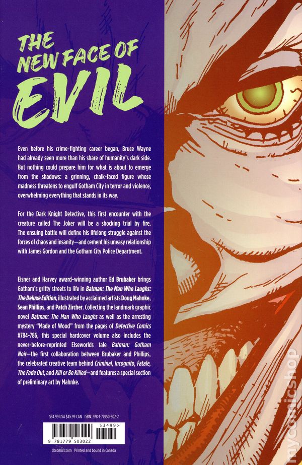 2nd and later printings. Collects Batman: The Man Who Laughs (2005) and Detective Comics (1937-2011) #784-786 and Batman: Gotham Noir (2001).