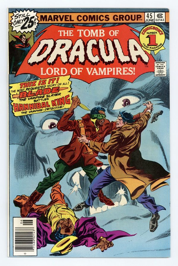 Starts Apr 20 Blade battles Hannibal King in "Crossfire!" Story introduces Deacon Frost, the vampire who bit Blade's mother. Script by Marv Wolfman, pencils by Gene Colan, inks by Tom Palmer. The letters page contains Marvel Value Stamp series B # 92 (Stan Lee). Colan/Palmer cover. Cover price $0.25.