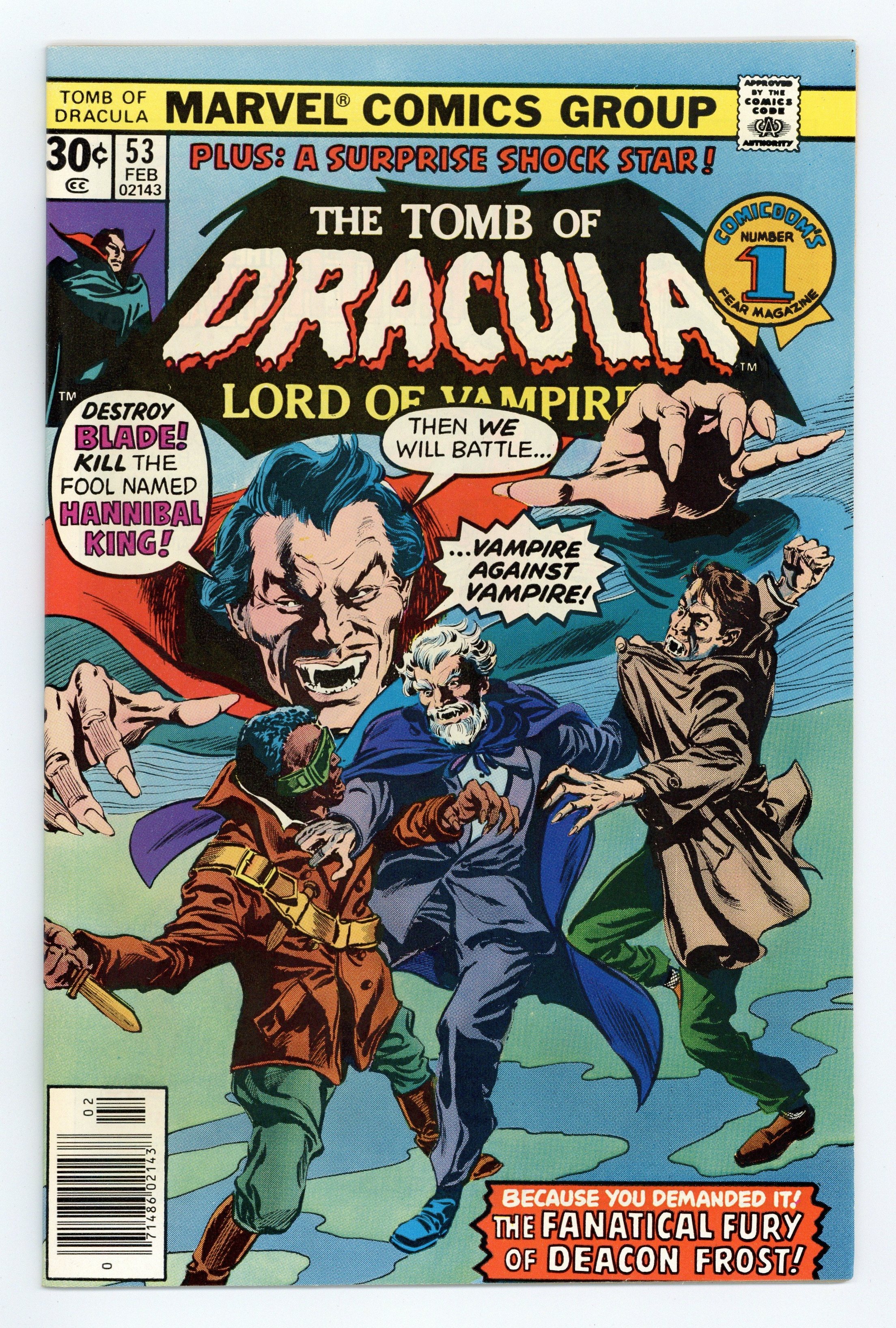 Starts Apr 20 Blade and Hannibal King guest star in "The Final Glory of Deacon Frost." Script by Marv Wolfman, pencils by Gene Colan, inks by Tom Palmer. Brief Son of Satan appearance. Letter to the editor from comics writer Peter Sanderson. Colan/Palmer cover. Cover price $0.30.
