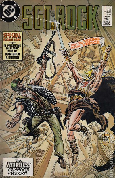 Direct Edition. Reprinting the classic 2-part tale from Our Army at War (1952) #162 and #163, "The Prince and the Sergeant," featuring the meeting of Sgt. Rock of Easy Company and the legendary Viking Prince. Written by Robert Kanigher, with art by Joe Kubert. Plus, a science fiction war story by Bob Haney and Neal Adams from Our Army at War (1952) #240. Cover by Kubert. Cover price $2.00.