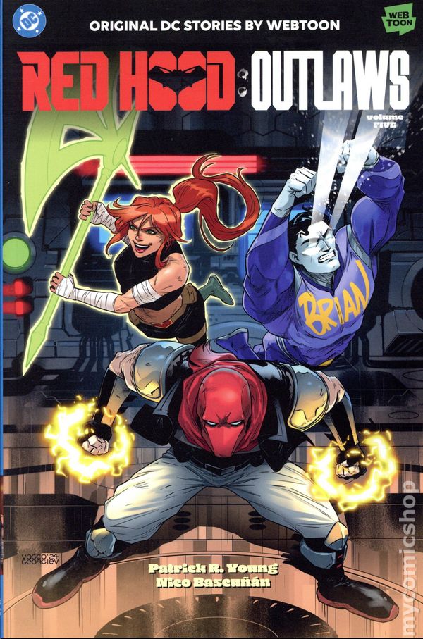 Volume 3 - 1st printing. Written by Patrick R. Young. Art by Nico Bascunan, Samuel Alarconj, Michelle Leffler, Nicole Bukowska, Jean Kim, Diana Knst, Rachel Koo, Maria Li, and Magda Price. Cover by Vasco Georgiev. Turns out that Batman is a little trickier than even Jason Todd was expecting. The Outlaws' time in the Justice League's Watchtower headquarters hasn't been quite what it seemed, and now they each must deal with the fallout. Collecting episodes #23-33 of WEBTOON's smash-hit series, optimized for a brand-new reading experience in print, including never-before-seen bonus content from the creators themselves! Softcover, 208 pages, full color. Cover price $14.99.