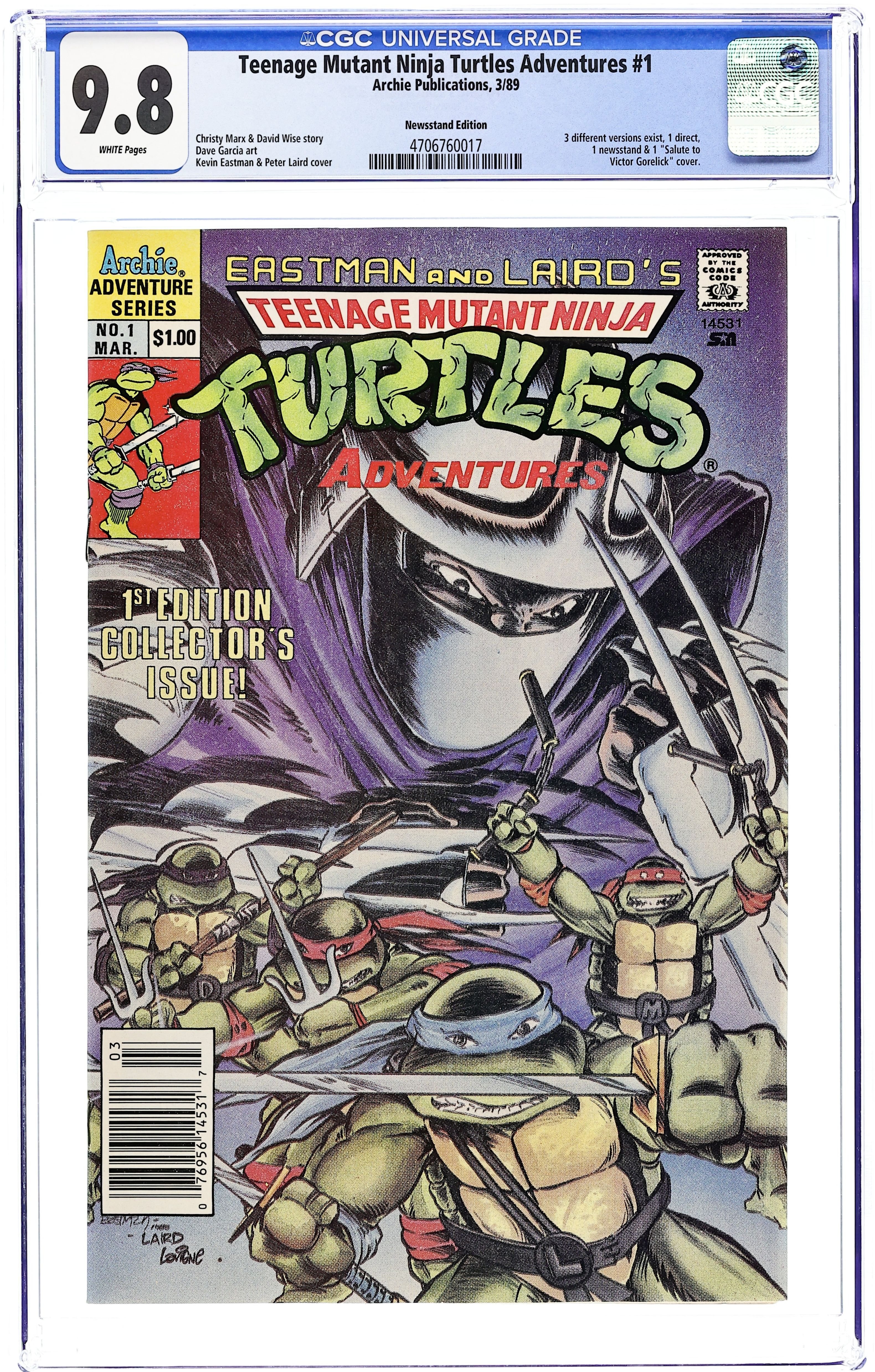 Published May 1989 by Archie Publications.Teenage Mutant Ninja Turtles Adventures (1989) 2D CGC 9.8