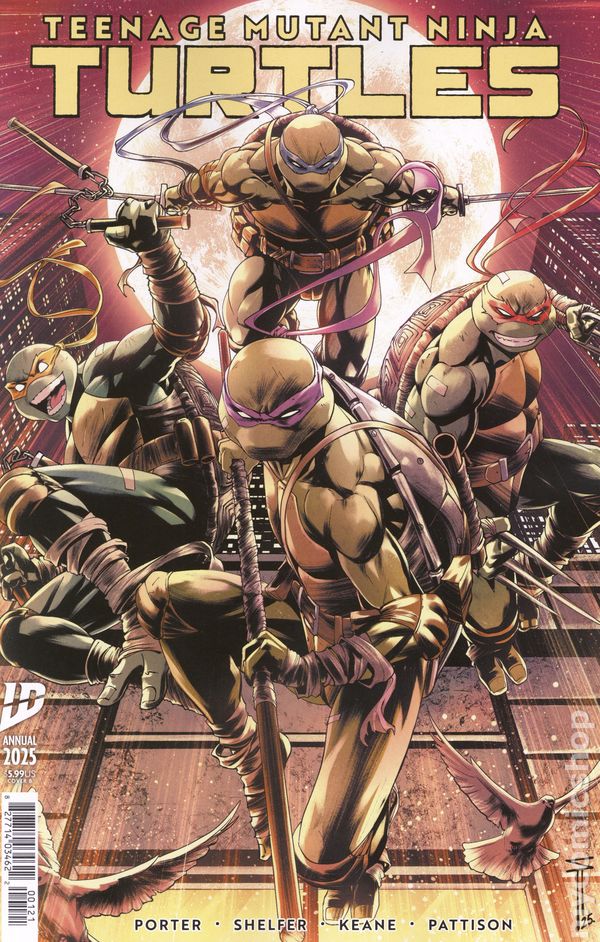 Limited 1 for 25 Retailer Incentive Variant Cover. (W) Kenny Porter (A) Maria Keane; Michael Shelfer (CA) Michael Shelfer After a year apart and a brutal war fought against D.A. Hale and his Foot Patrol, the four Teenage Mutant Ninja Turtles are back together and finally reforming their bonds. But…there are shadows hanging over them from their year apart, and Donnie is still struggling to get back on his feet. Leonardo, Michelangelo, and Raphael will need to pull together, train, and share details of their lost year in order to help their fourth brother get his second wind as they reflect on the past and begin to reforge their brotherly bonds. From the team of Kenny Porter (Superboy: Man of Tomorrow, DC Mech) and Michael Shelfer (Action Comics, NYX)! Cover price $5.99.