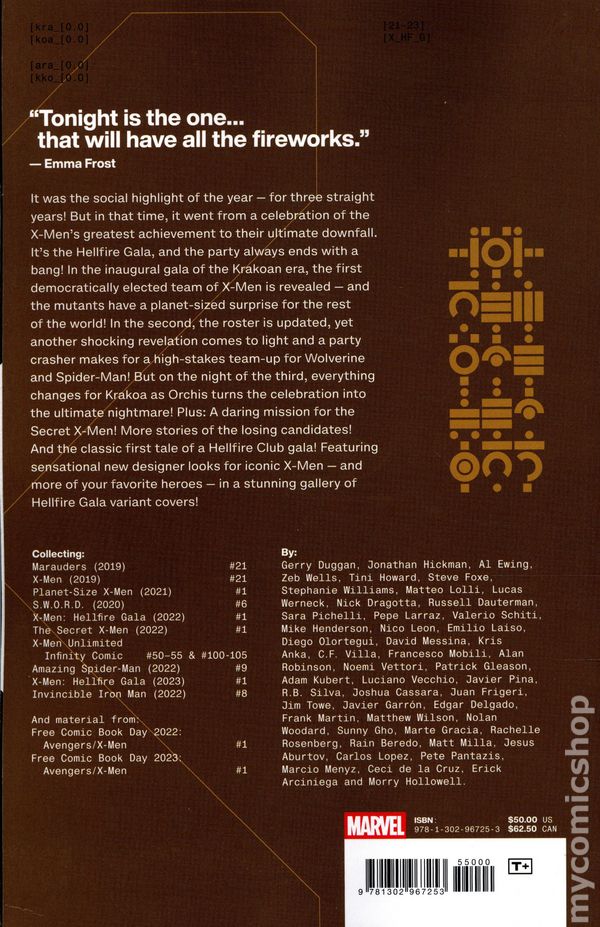 The X-Men are rolling out the red carpet for the biggest Krakoan event of the season - and this high-class hardcover details every drink, dance, dalliance and deception at the Hellfire Gala! Featuring appearances by the Avengers, Fantastic Four, Doctor Strange, Doctor Doom, and many celebrities and faces of pop culture!