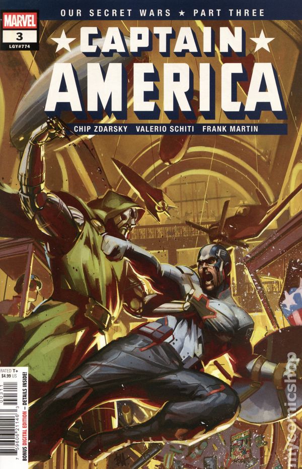 Written by Chip Zdarsky. Art by Valerio Schiti. Cover by Chip Zdarsky. ORIGIN OF DOOM! A meeting with Doctor Doom in Latveria forces Steve to confront the realities of the harsh new world he's awoken in. Meanwhile, Dave Colton and the Howling Commandos infiltrate Doom's fortress to rescue hostages, but instead they uncover a sinister truth behind Doom's rise to power… 32 pages, full color. Rated T+ Cover price $4.99.