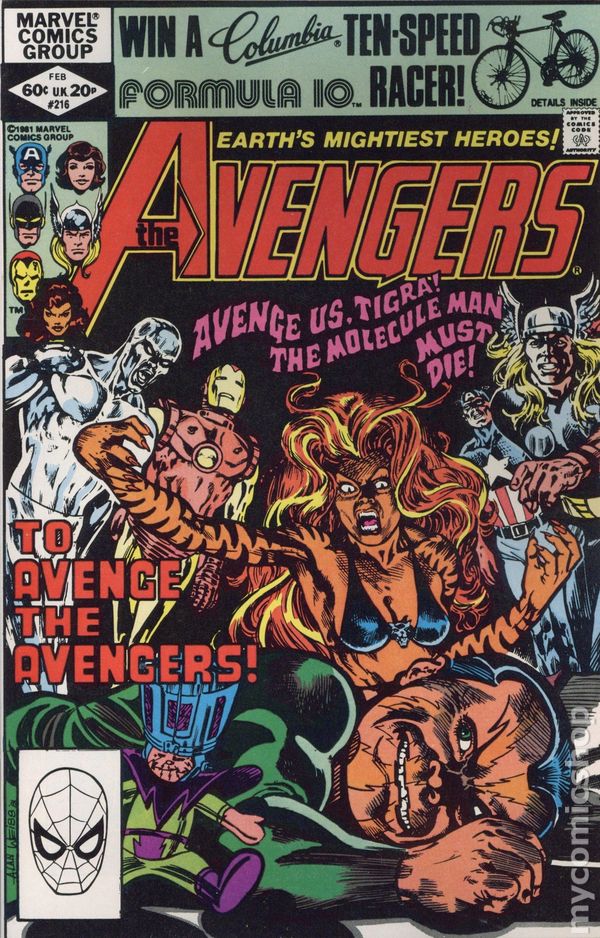 Direct Edition. "All the Ways of Power!" Part 1 of 2. Guest-starring the Silver Surfer. Script by Jim Shooter. Pencils by Alan Weiss. Inks by Dan Green. Cover by Alan Weiss. While flying over the swamps of New Jersey, the Silver Surfer senses a powerful energy source lying among the weeds. It's a wand! Could a simple wand somehow threaten the cosmic sky-rider? Yes! Because it's the wand of the Molecule Man! After subduing the surfer, the Molecule Man decides to conquer the world! However, Earth's Mightiest Heroes stand ready to oppose the power-mad villain! It's a super showdown of heavyweight proportions: Captain America, Iron Man, Thor, and the Silver Surfer vs. the Molecule Man! (and Tigra's in the mix too!) Cameo appearance by Ann Nocenti. Flashback cameos by the Fantastic Four, Galactus, and Shalla-Bal. First 60¢ issue. (Note: The Molecule Man previously appeared in Micronauts (1st series) 23.) 36 pages Cover price $0.60.