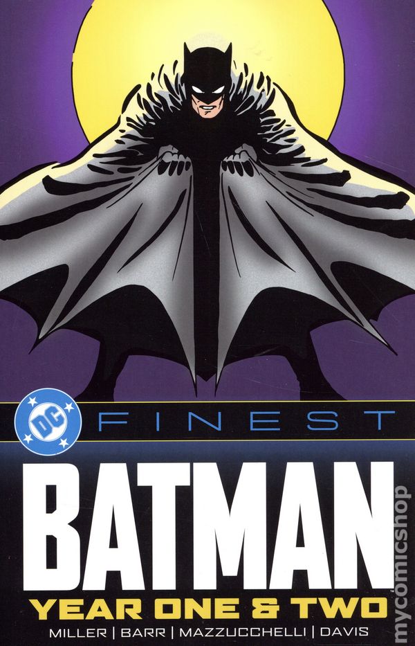 2nd and later printings. Collects Batman (1940-2011) #401-412, Batman (1940-2011) Annual #11, and Detective Comics (1937-2011 1st Series) #568-579. Written by Barbara J. Randall, Max Allan Collins, Denys Cowan, Frank Miller, Alan Moore, Joey Cavalieri, and Mike W. Barr. Art by Trevor Von Eeden, Jim Starlin, Denys Cowan, David Mazzucchelli, Chris Warner, Ross Andru, Dave Cockrum, George Freeman, Klaus Janson, Alan Davis, Todd McFarlane, Norm Breyfogle, Greg Brooks, Mike DeCarlo, Dick Giordano, Don Heck, Preston Payne, Paul Neary, Terry Beatty, Carmine Infantino, Al Vey, E.R. Cruz and Alfredo Alcala. Cover by David Mazzucchelli. THE DEFINITIVE RETELLING OF THE DARK KNIGHT'S ORIGIN! Begin your DC Finest: Batman collection with what is regarded as one of the greatest masterpieces in comics: Year One. We all know the story of how young Bruce Wayne lost his parents. Now witness his early years, before he befriended an honest cop named James Gordon, as Bruce trains to become a dark guardian of justice. And in Year Two, Batman meets the Reaper, a villain so vile he made the Dark Knight rethink his stance on firearms. Softcover, 592 pages, full color. Teen Cover price $39.99.
