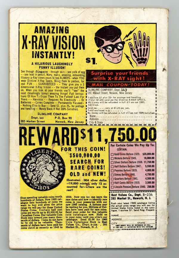 Starts Feb 2 Cover pencils by Jack Kirby, inks by Vince Colletta. "When Meet the Immortals!", script by Stan Lee, pencils by Jack Kirby, inks by Vince Colletta; Thor grapples with "The Demon" to recover the Norn Stone, while Hercules blunders about the world of Man, crossing paths with Jane Foster. Marvel Bullpen Bulletins. Tale of Asgard: "The Queen Commands," script by Stan Lee, pencils by Jack Kirby, inks by Vince Colletta; Thor's plans for a peaceful parlay with the Flying Trolls is dashed when Loki unleashes a poison gas on them! Ad for Hulk Sweat Shirt, Spider-Man Pin-Up, Super-Hero Stationery Kit, and Thor T-Shirt. 36 pgs., full color. $0.12. Cover price $0.12.