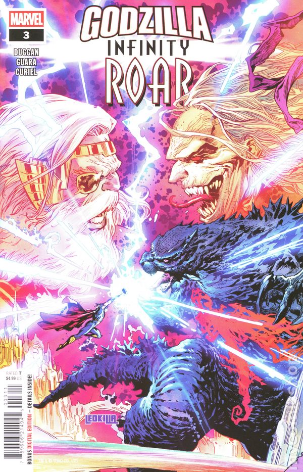 (W) Gerry Duggan (A) Ig Guara (CA) Ken Lashley KNULL X GODZILLA: ALL-OUT ASSUALT ON ASGARD! GODZILLA's rampage has reached the Rainbow Bridge as THOR leads an army in Asgard's defense! As chaos erupts, KNULL slips away to enact a secret plan to spread his symbiotes across the galaxy - will the All-Father, ODIN, be able to stop him as Kings and Gods collide? Meanwhile, across the cosmos, DOCTOR DOOM has enacted a secret plan of his own that could tip the scales - but in what direction, no one knows! 32 pages, full color, rated T. Cover price $4.99. -
