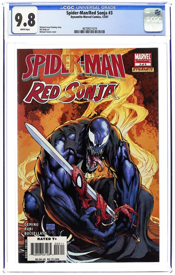 Written by MICHAEL AVON OEMING Penciled by MEL RUBI Cover by MICHAEL TURNER If Spider-Man vs. Red Sonja wasn't enough, now it's Kulan Gath vs. Venom! Our heroes' worst foes collide -- but who will emerge victorious? What will this mean for the Wall-Crawler and the She-Devil with a sword? Which three members of the Web-Slinger's rogues gallery have also joined the chaos? And have we mentioned that if Red Sonja dies, so does Mary Jane? Cover price $2.99.