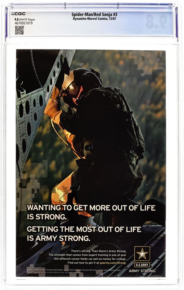 Written by MICHAEL AVON OEMING Penciled by MEL RUBI Cover by MICHAEL TURNER Continuing the time-tossed team-up between the web-slinger and the She-Devil with a Sword! Okay, if Spider-Man and Red Sonja aren't enough for you, what about Hyborean versions of the Scorpion, the Lizard and Hobgoblin? Still not enough? Then howzabout Kulan Gath and Venom...combined? Yeah, we thought that would do it. Cover price $2.99.