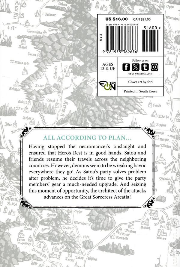 Volume 21 - 1st printing. Written by Hiro Ainana. Art and Cover by Shri. Translated by Jenny McKeon. After seeing off the hero, Satou and the party visit Parion Province's Village of Adepts. But soon after their arrival, students begin to go missing. The disappearances seem to be connected to a Holy Woman and a mysterious ritual. Can everyone's favorite problem-solver crack yet another case? Softcover, 5-in.x 7-in., 252 pages, Text (with B&W Chapter Illustrations). Teen Cover price $15.00.