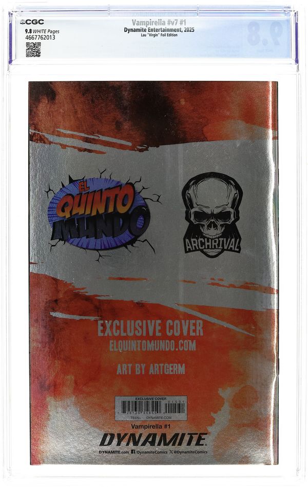 Tags: Vampirella, VampiresPublished 2025 by Dynamite Entertainment.Vampirella (2025 Dynamite) 1ARCHRIVAL.B.FOIL CGC 9.8