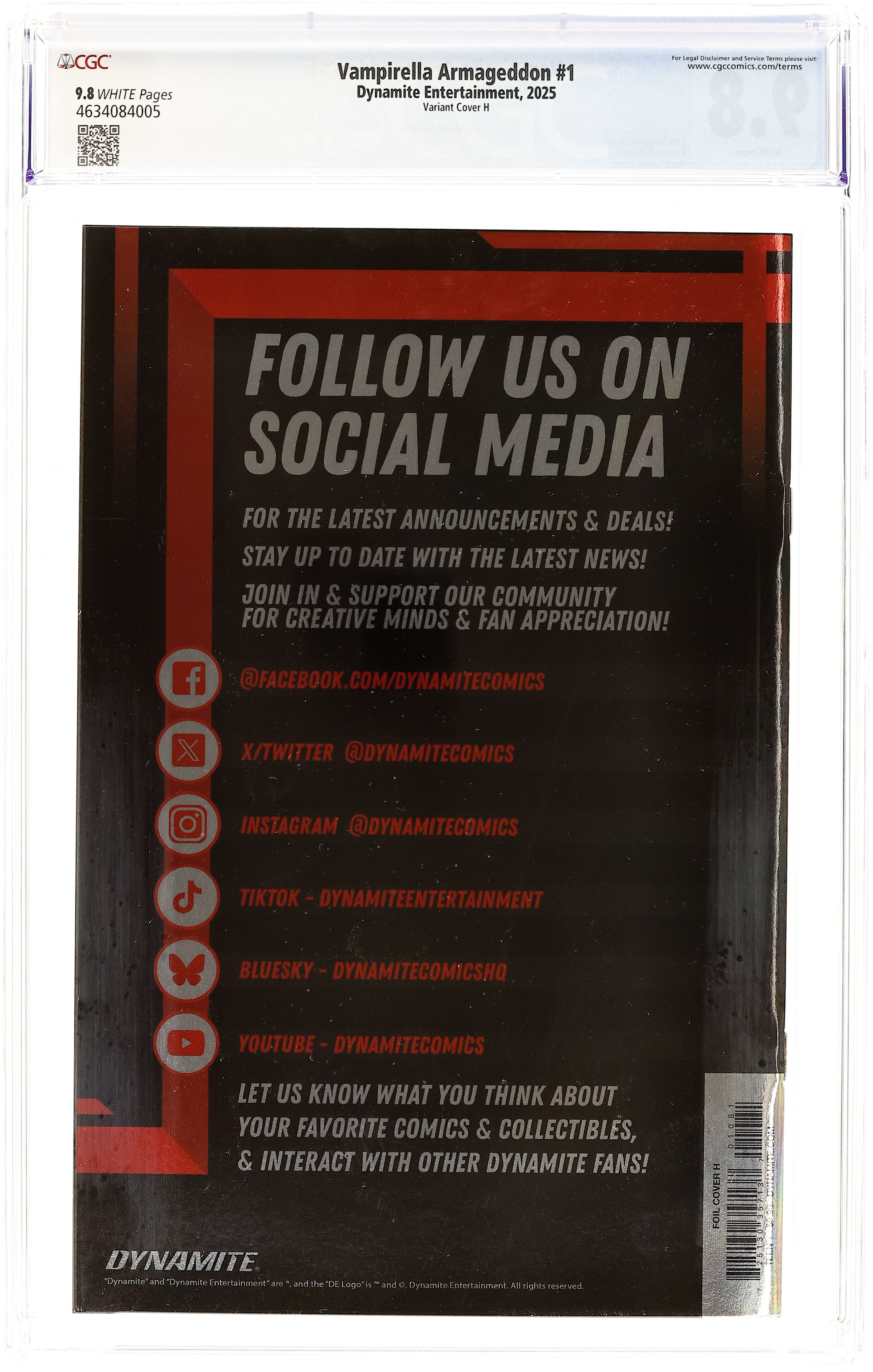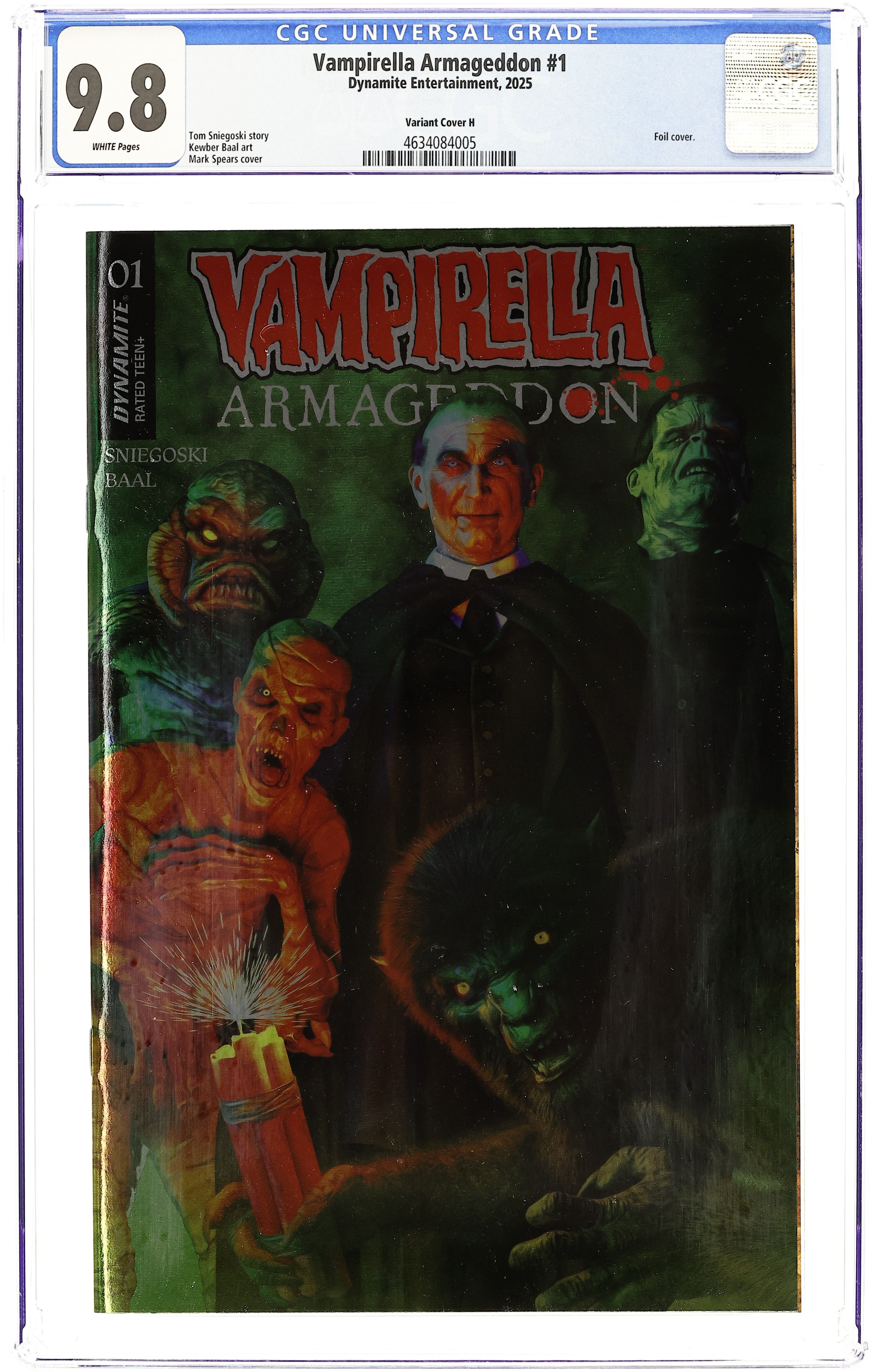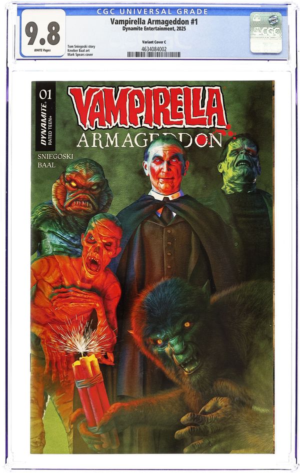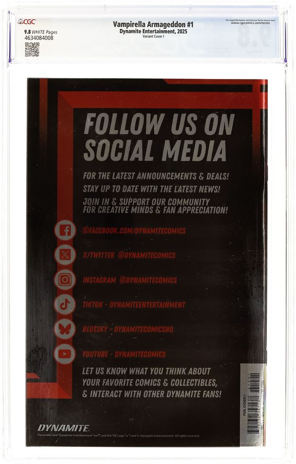 Tags: VampirellaPublished 2025 (est.) by Dynamite Entertainment.Vampirella Armageddon (2025 Dynamite) 1I CGC 9.8 Spears Virgin Foil Variant
