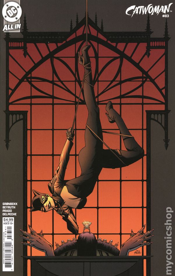(W) Torunn Gronbekk (A) Danilo Beyruth (CA) Derrick Chew STUCK IN THE MIDDLE WITH MEW! Catwoman has successfully infiltrated the auction hosted by the worlds most dangerous criminals--but as seen last issue, shes not the only Gothamite in town! Who else has arrived in Venice? Why is this score so personal for Selina? Most importantly--will any of them make it out alive? Find out here! 32 pages, full color, rated 13+. Cover price $4.99.