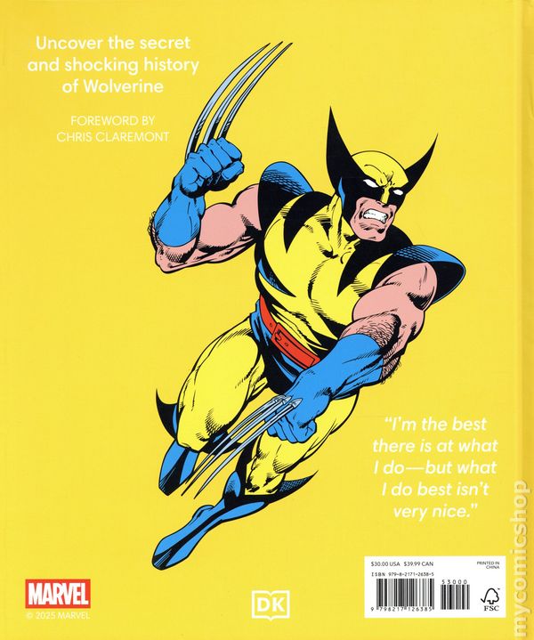 1st printing. By Amy Richau and Win Wiacek. Cover by Jim Lee. Back Cover by John Byrne. Uncover the secret and shocking history of The Wolverine. James Howlett, Logan, Weapon X, Mutant, Patch: the Wolverine has had many names and titles over the decades, but who is he really under the mask? Ever since his first comic-book appearance in The Incredible Hulk #189 (1974), Wolverine has left an indelible mark on the Marvel multiverse. Chart his evolution throughout the decades of Marvel Comics from his origins in rural Canada in the 1800s through to Wolverines role in the first Krakoan era. Learn more about his stalwart allies, including the X-Men, X-23, and Captain America, and his vengeful enemies – like Sabretooth and Lady Deathstrike. In this latest addition to DKs comprehensive, in-world super hero Ultimate Guides, youll find everything you need to know about the Wolverine. This revised edition includes a foreword by a top Marvel Comics expert, a timeline of the Wolverines adventures, detailed character studies, key storylines, and in-depth explorations of iconic comics, bringing this mutants thrill-packed story right up to date. Hardcover, 9 1/2-in.x 12-in., 200 pages, full color. Cover price $30.00.