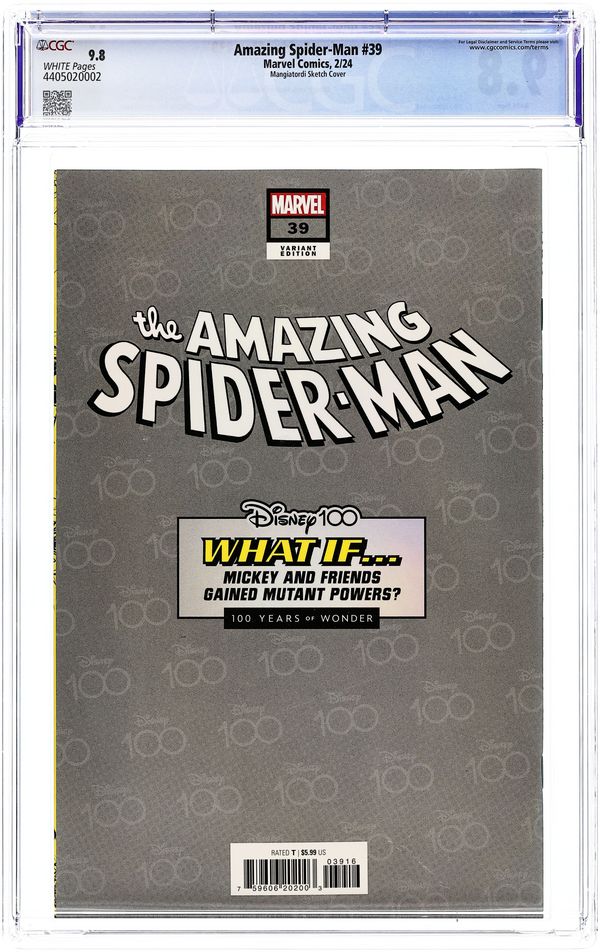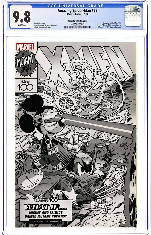 Disney X-Men title dress/cover swipe, but is ASM #39. Limited 1 for 100 Retailer Incentive Variant Cover. Written by Zeb Wells. Art by John Romita Jr. Cover by Vitale Mangiatordi. GANG WAR STARTS HERE! Super-crime is running rampant, and Spider-Man can't solve just one problem at a time. So Spidey builds a team to take down ALL the super-criminals of NYC in 48 hours. Good luck, Spidey. 40 pages, full color. Rated T Cover price $5.99.