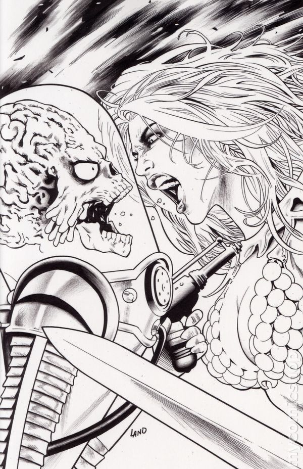 Limited 1 for 15 Retailer Incentive Variant Cover. Written by Jay Stephens. Art by Fran Strukan. Cover by Greg Land, Ivan Nunes. It's nonstop, page-turning action in this fourth and final issue detailing the weirdest war ever witnessed in the Hyborian Age! The White Apemen of Mount Bori join the She-Devil's side against the Arean Invaders, and Martian battles Martian when one bulging-brained attacker is possessed by the ancient serpent god Set and emerges flanked by snake-filled Martian mummies as the all-powerful conqueror, MAR-SET-AHKS! 32 pages, full color. Rated T+ Cover price $4.99.