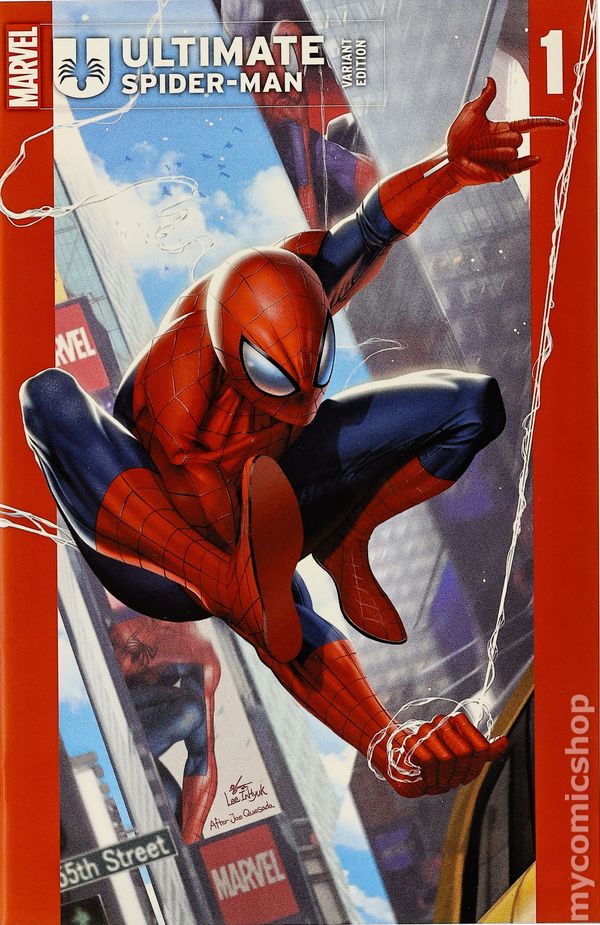 Third Printing. East Side Comics Fan Expo Philadelphia Exclusive Variant Cover by InHyuk Lee - limited to 800 copies. Written by Jonathan Hickman. Art by Marco Checchetto. THE NEW ULTIMATE SPIDER-MAN FOR A NEW ULTIMATE UNIVERSE! Visionary writer Jonathan Hickman (HOUSE OF X/POWERS OF X) and acclaimed artist Marco Checchetto (DAREDEVIL) bring you a bold new take on Spider-Man, with this, the debut title of the new line of Ultimate Comics! After the events of ULTIMATE INVASION, the world needs a hero...who will rise up to take on that responsibility? Prepare to be entangled in a web of mystery and excitement as the all-new ULTIMATE SPIDER-MAN comic redefines the wall-crawler for the 21st Century! 48 pages, full color. Rated T Cover price $5.99.