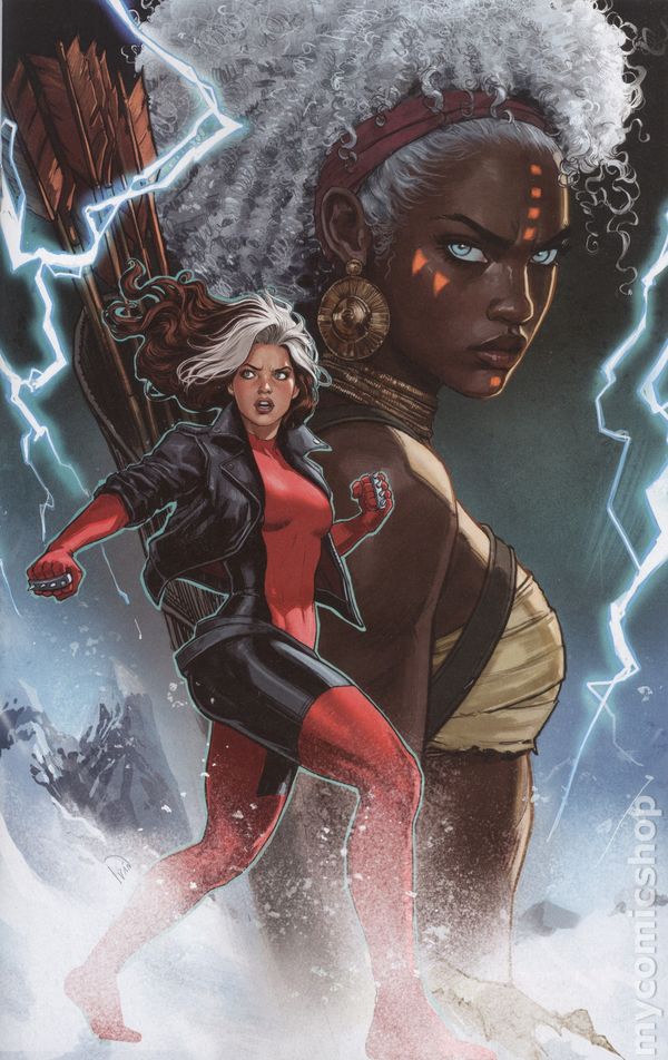 (W) Murewa Ayodele (A) Roland Boschi (CA) Ivan Talavera KILL THE GODDESS, SAVE THE WORLD! X YEARS LATER, with Earth's gods gone, only ORORO MUNROE, the mutant god of storms remains. She is a goddess driven mad by dark magic and grief. Now, as STORM threatens to freeze the world into a new Ice Age, Rogue leads a team of killers and legends - Gateway, Iceman, Fantomex, Spiral and Warpath. The sole mission of this Uncanny X-Force: kill Storm. 32 pages, full color, rated T+. Cover price $3.99.