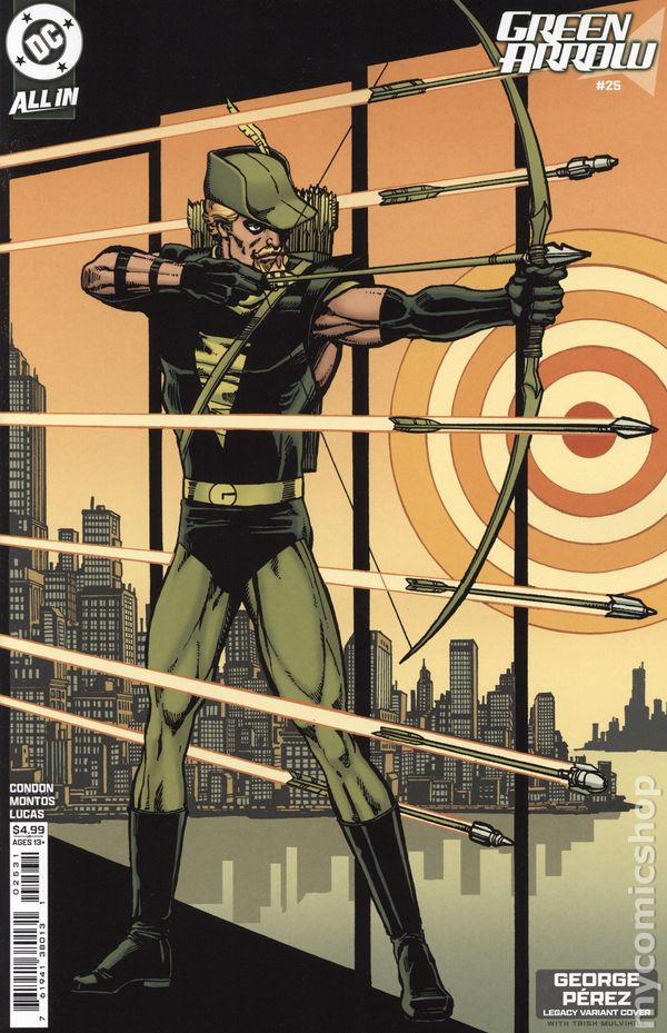 $8 Green Arrow #25 Cover D George Perez Legacy Card Stock Variant $10 GREEN ARROW #25! NM! GEORGE PEREZ LEGACY VARIANT COVER! Clicking on the links to the eBay listings shown above and then making a purchase may result in MyComicShop earning a commission from the eBay Partner Network.