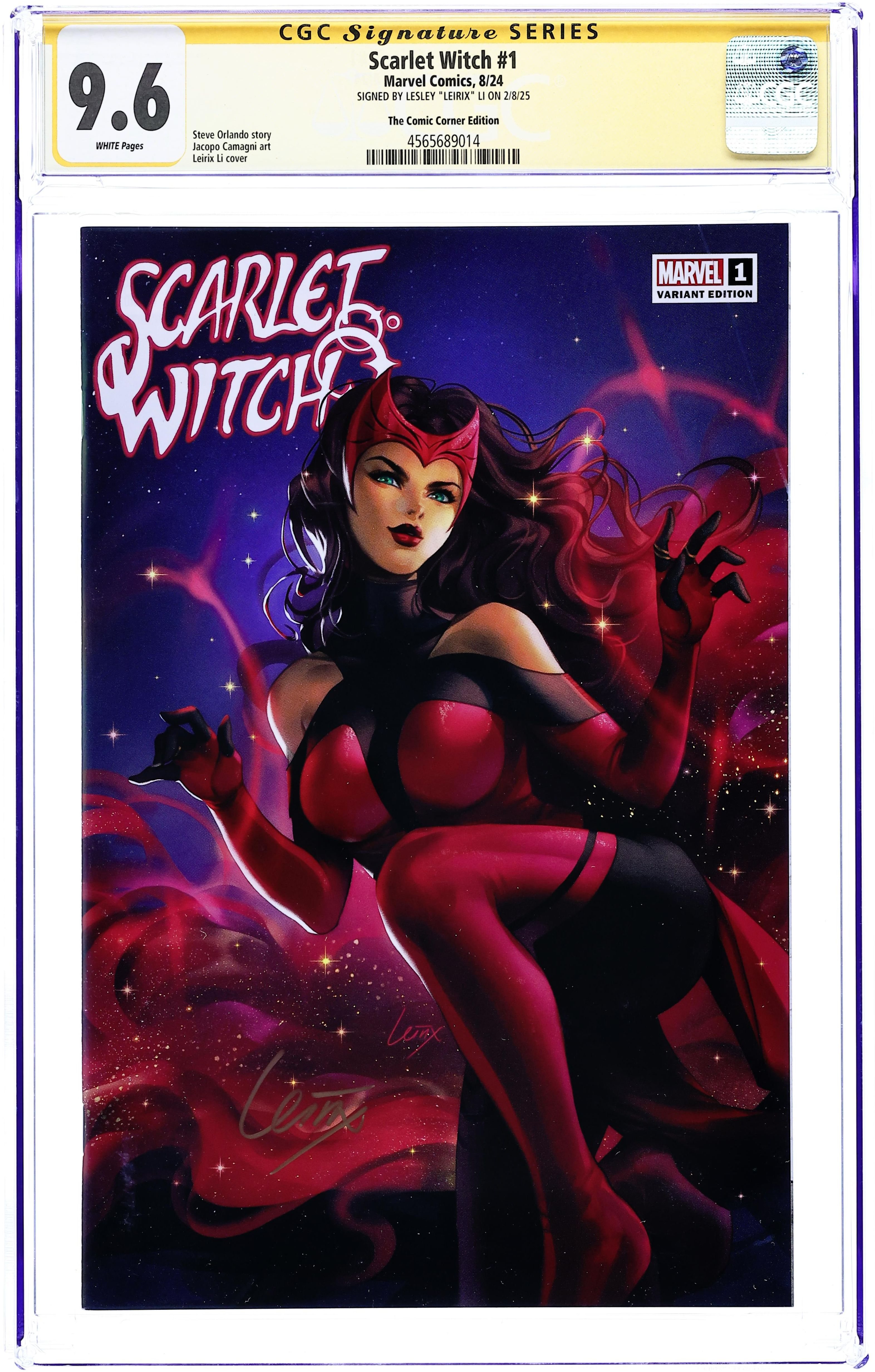 Comic Corner Exclusive Variant Cover by Leirix Li. Written by Steve Orlando. Art by Jacopo Camagni. STEVE ORLANDO'S SCARLET WITCH RUN REIGNITES! The Scarlet Witch has carved out a haven for herself in upstate New York, but it's all about to go up in flames. Wanda's newfound peace has drawn the wrath of a primal force unlike anything she's ever faced before, and it won't stop until it razes Wanda's world to the ground. It's a clash of titans as Wanda and her allies fight for all she holds dear! What happens when an unstoppable force meets the end of all things? When pure chaos meets pure destruction? Wanda's about to find out - if she survives long enough. Jacopo Camagni (X-MEN: RED, Nomen Omen) joins writer Steve Orlando for an explosive new chapter of Scarlet Witch's story! 40 pages, full color. Rated T+ Cover price $4.99.