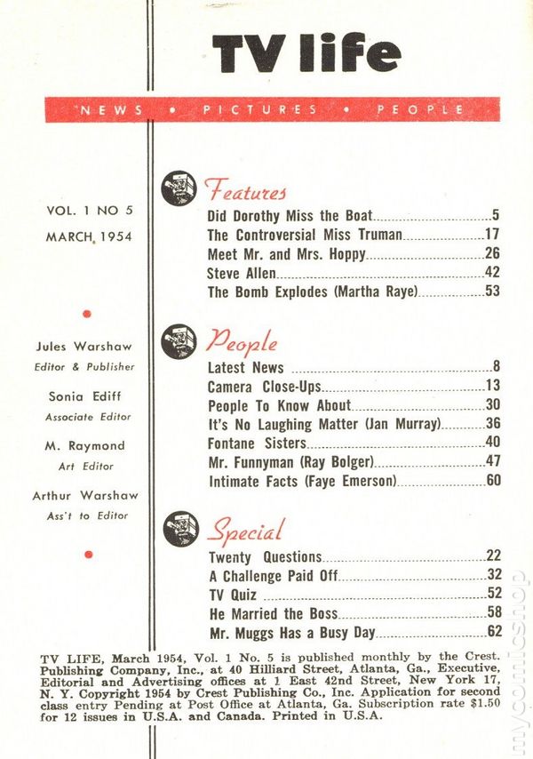 Tags: TVPublished Mar 1954 by Crest Publishing Company.$14.00