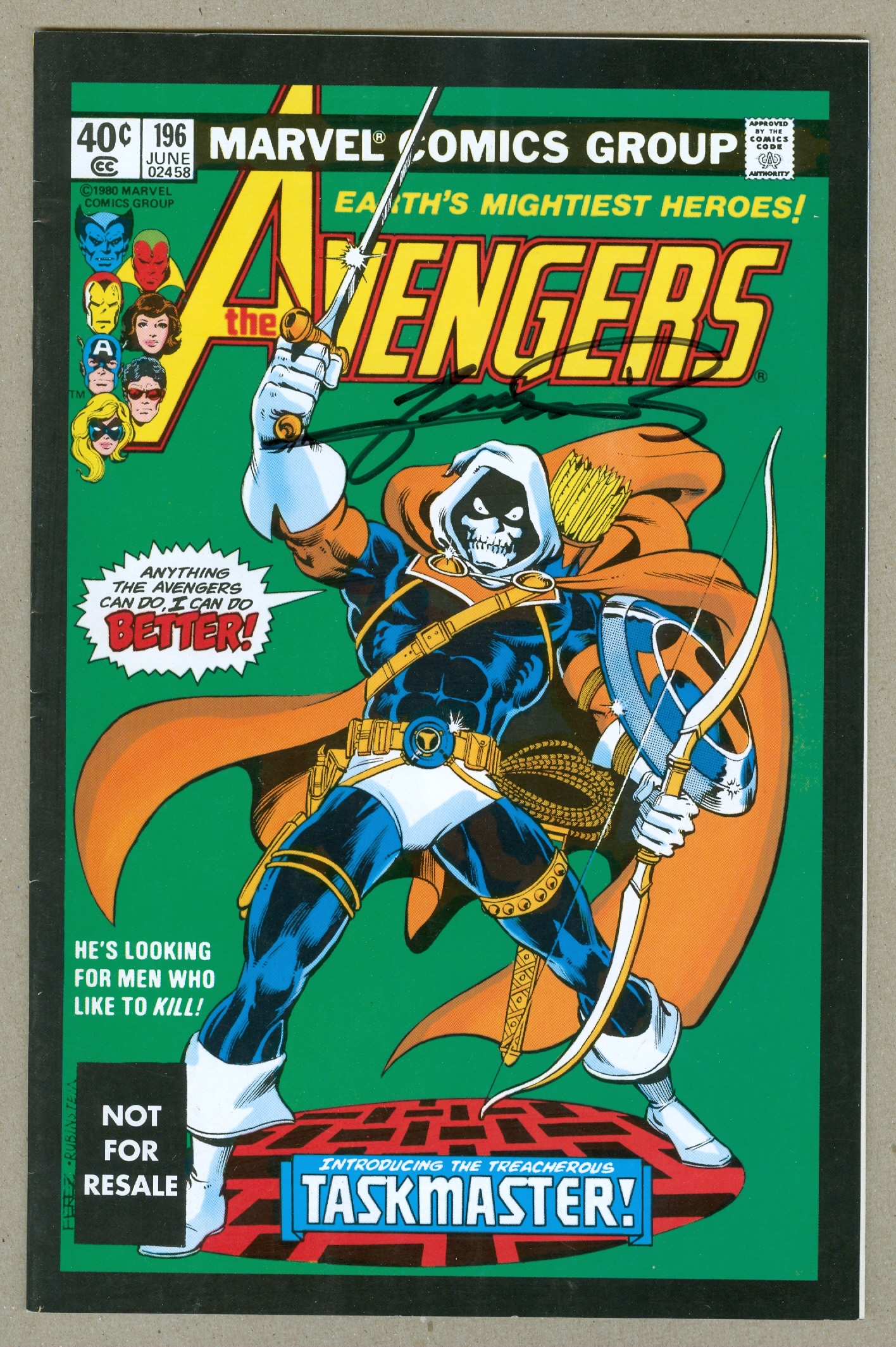 Reprint edition that originally came packaged with Taskmaster from Marvel Legends series 11 (Legendary Riders Series). First full appearance of the Taskmaster in "The Terrible Toll of the Taskmaster." Script by David Michelinie, pencils by George Perez, inks by Jack Abel. Letter to the editor from comics writer Kurt Busiek. Perez/Joe Rubinstein cover. Grade: VF 8.0 explanation of grade Condition: Used (collectible)