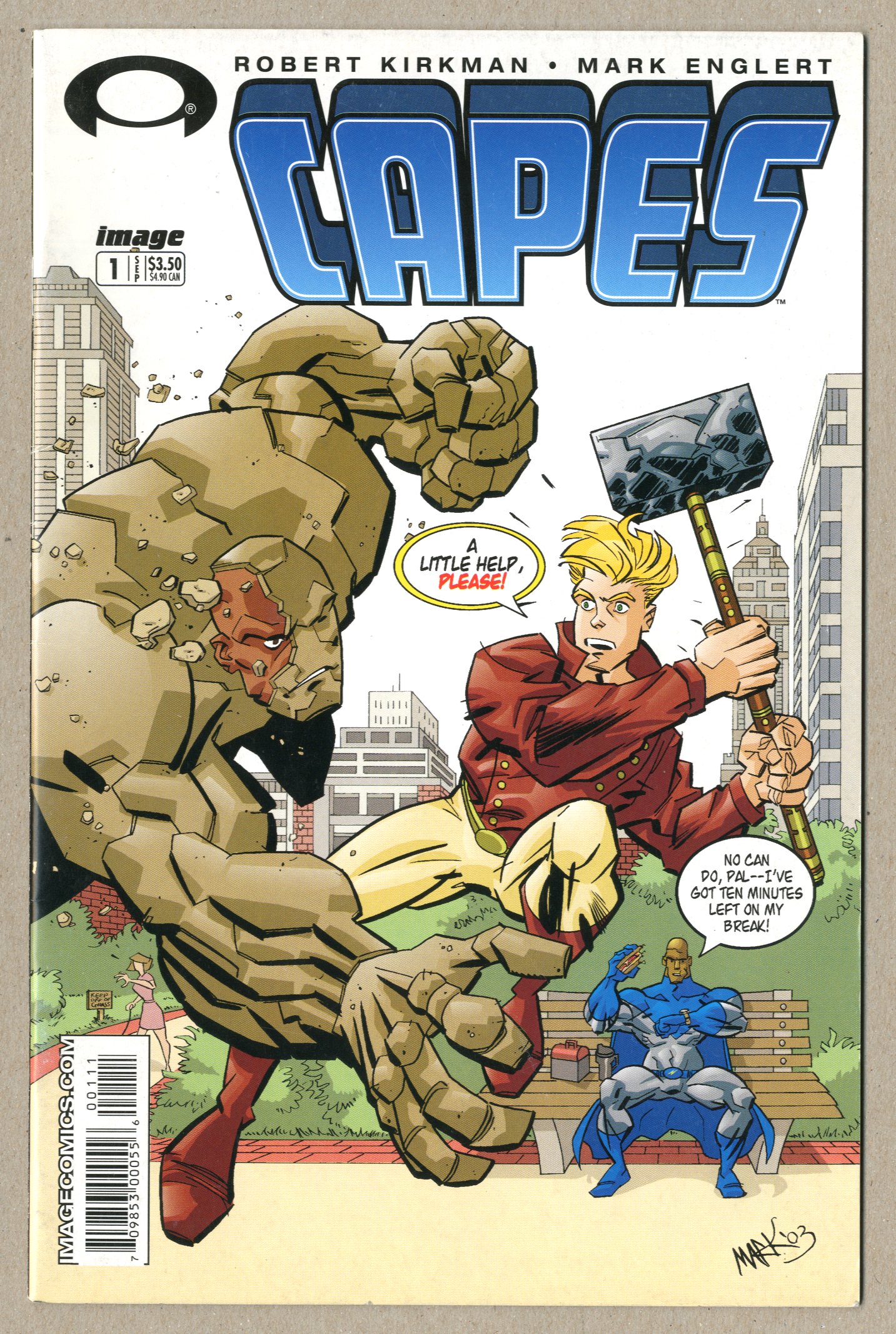 Ended Aug 16 2012 Winning Bid $66 Written by Robert Kirkman, art and cover by Mark Englert. #1 in a three issue mini-series. Join Bruce Bolt, the Meteor Twins, Big Brain, the American Champion, his cheating wife Freedom, and the rookie Kid Thor, as they try to make a business out of being super. This issue features a preview of Kirkman's hit "The Walking Dead" series, making this the series' first appearance. Cover price $3.50. Grade: FN 6.0 explanation of grade Condition: Used (collectible)