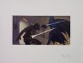 Star Wars design print by Ralph McQuarrie. Signed by Star Wars producer Gary Kurtz. Features a preliminary design of "Annikin Starkiller" (Luke's original name) battling Darth Vader. Check out those early light saber designs! High-quality print on archival paper. 24" x 18", full color.