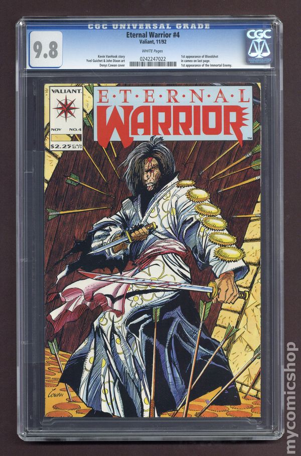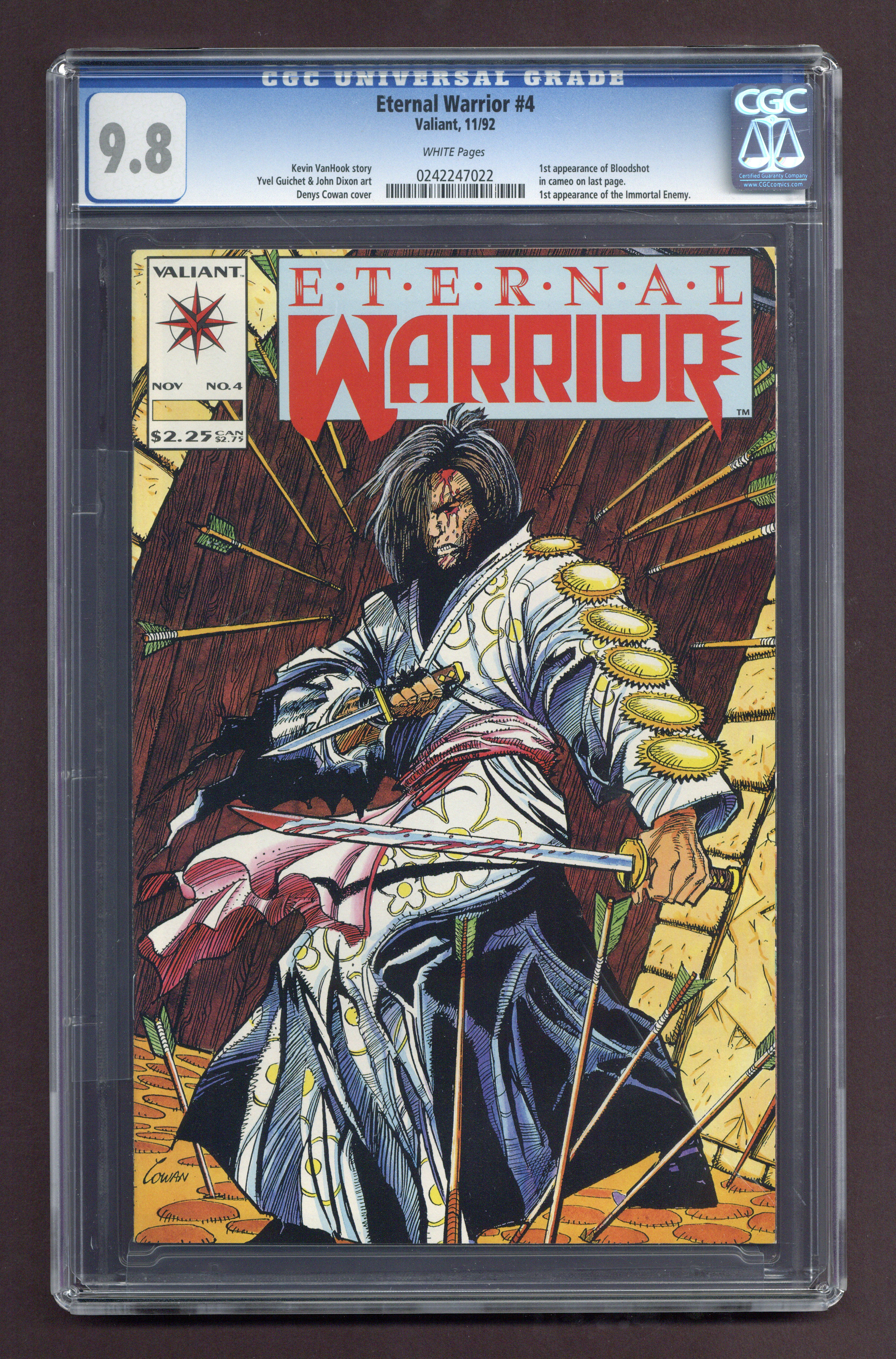 Gilad pursues and faces an enemy that he has battled throughout time in many different incarnations in "Evil Reincarnate." 1st appearance of Bloodshot (cameo). Script by Kevin Vanhook and art by Yvel Guichet & John Dixon. Cover price $2.25. Grade: CGC 9.8 explanation of grade Condition: Used (collectible)