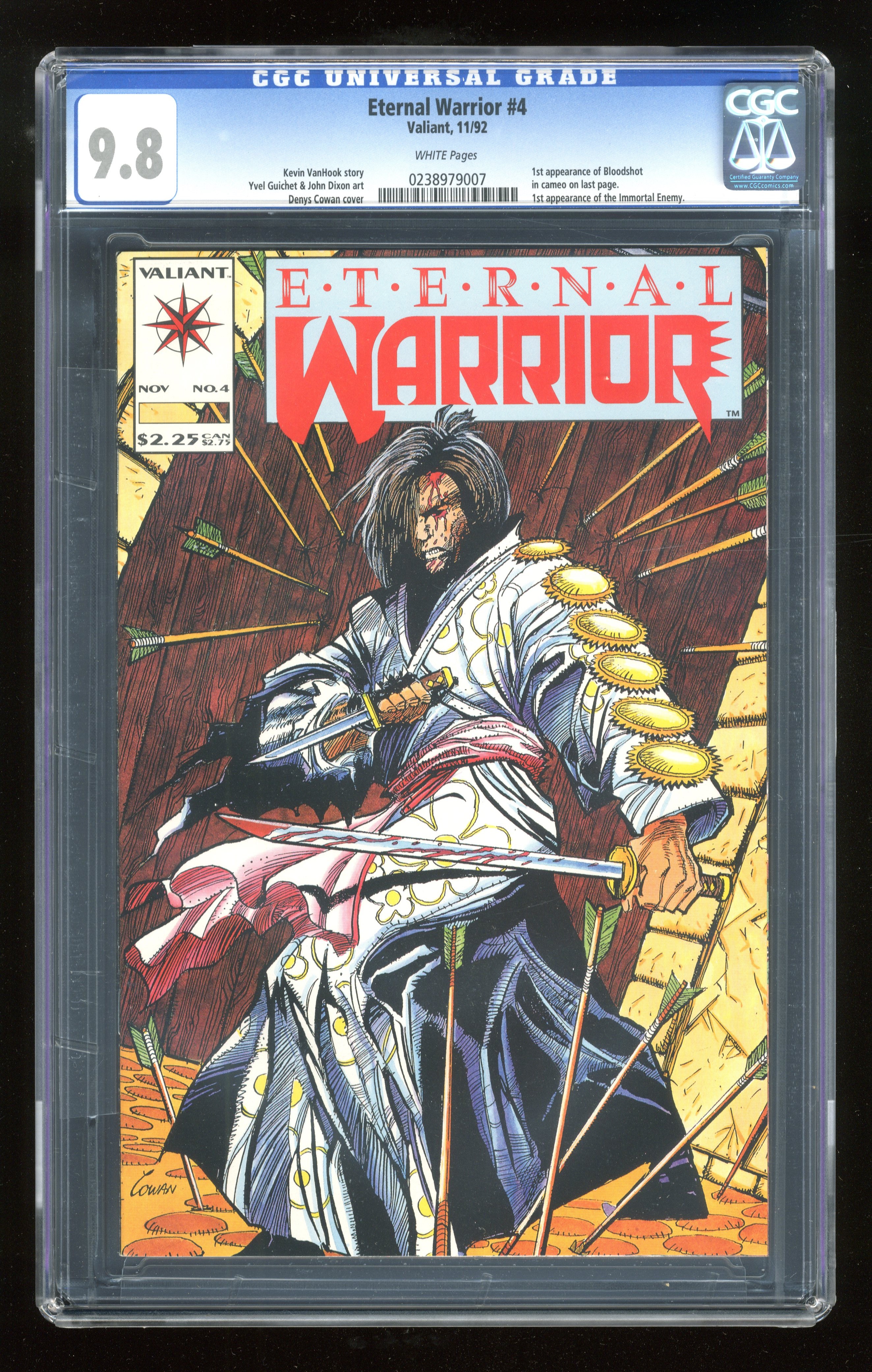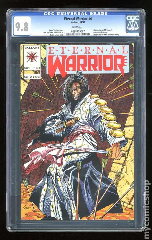Gilad pursues and faces an enemy that he has battled throughout time in many different incarnations in "Evil Reincarnate." 1st appearance of Bloodshot (cameo). Script by Kevin Vanhook and art by Yvel Guichet & John Dixon. Cover price $2.25. Grade: CGC 9.8 explanation of grade Condition: Used (collectible)