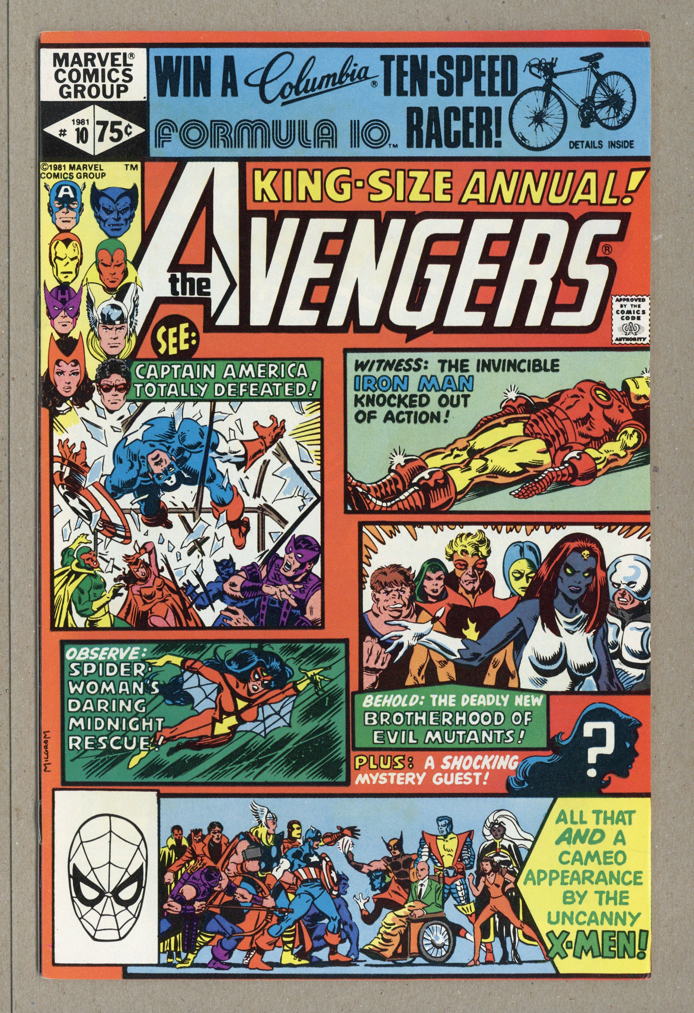 Ended Apr 24 2015 Winning Bid $39 Direct Edition. First appearance of Rogue and Madelyne Pryor in "By My Friends Betrayed!" Spider-Woman, X-Men, Carol Danvers, and New Brotherhood of Mutants guest star. Script by Chris Claremont. Pencils by Michael Golden. Inks by Armando Gil. Cover by Al Milgrom. This action-packed annual has got it all, true believers: the first appearance of Rogue, the spectacular art of Michael Golden, the tragic return of Carol Danvers, and the stupendous struggle between the Brotherhood of Evil Mutants and the mighty Avengers! Following the events of Uncanny X-Men #142, Mystique & her New Brotherhood of Evil Mutants attempt to break four of their members out of Ryker's Island prison! After Rogue and Mystique take down Captain America, Iron Man, and Thor, the rest of the Avengers and Spider-Woman catch up to the villains, and the epic clash erupts! Woven in and around the frantic action at Ryker's Island is the heartbreaking story of Carol Danvers' return to Earth. Her life has fallen apart since leaving for Limbo with Marcus Immortus in Avengers #200, and now, stripped of her powers and memories, Carol begins the long road to recovery. And the first step is an emotional confrontation with her former teammates! Notes: Marvel Super-Heroes #11 (Fall 1992) fills in the details of Carol Danvers' life between Avengers #200 and Avengers Annual #10. The Thing stars in a one-page Hostess ad, "A Lesson to Be Learned!" This issue was reprinted in 1993 in the trade paperback: The Greatest Battles of the Avengers. 52 pages, full color. Cover price $0.75. Grade: VF- 7.5 explanation of grade Condition: Used (collectible)