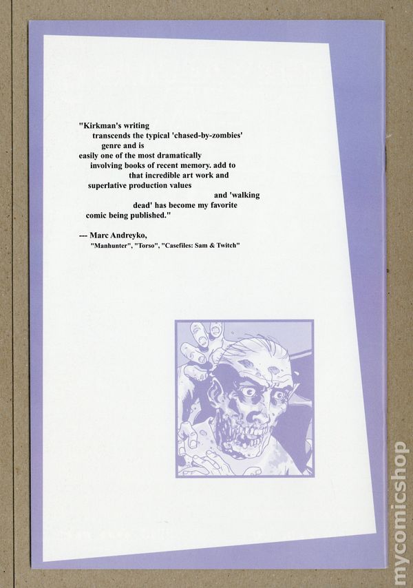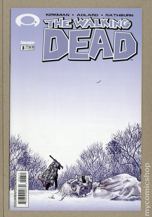 Ended Mar 22 2015 Winning Bid $61 1ST PRINTING (2nd printing exists). (W) Robert Kirkman (P) Charlie Adlard (Cover) Tony Moore; The search for suitable shelter continues. Rick and crew find themselves at the mercy of a harsh winter that makes their arduous journy that much more difficult. For months they've looked for something to take their minds OFF the zombie threat at hand... and now that they;ve got it; they're in more danger than ever before. Cover price $2.95. Grade: VF+ 8.5 explanation of grade Condition: Used (collectible)