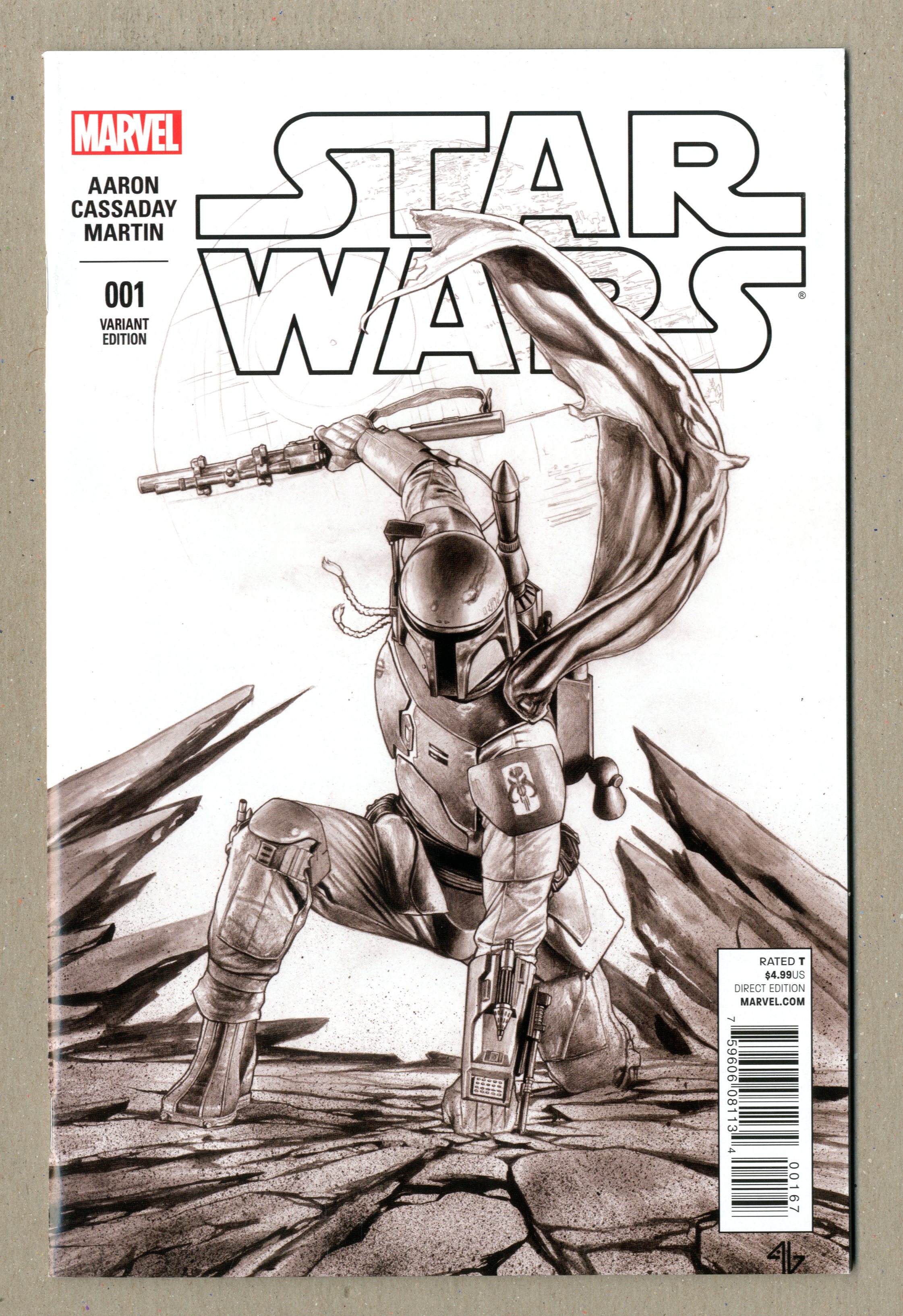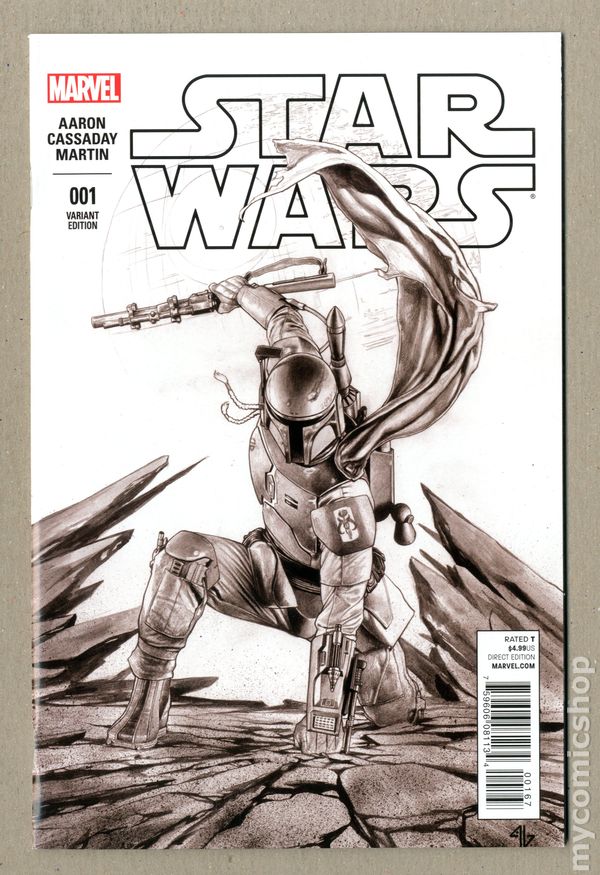Ended Jul 22 2019 Winning Bid $41 Forbidden Planet Exclusive Boba Fett Variant Sketch Cover by Adi Granov. Written by Jason Aaron. Art by John Cassaday. THE GREATEST SPACE ADVENTURE OF ALL TIME RETURNS TO MARVEL! Luke Skywalker and the ragtag band of rebels fighting against the Galactic Empire are fresh off their biggest victory yet-the destruction of the massive battle station known as the Death Star. But the Empire's not toppled yet! Join Luke along with Princess Leia, smugglers Han Solo and Chewbacca, droids C-3PO and R2-D2 and the rest of the Rebel Alliance as they strike out for freedom against the evil forces of Darth Vader and his master, the Emperor. This is the Star Wars saga as only Marvel Comics could make it! 48 pages, full color. Rated T Grade: VF+ 8.5 explanation of grade Condition: Used (collectible)