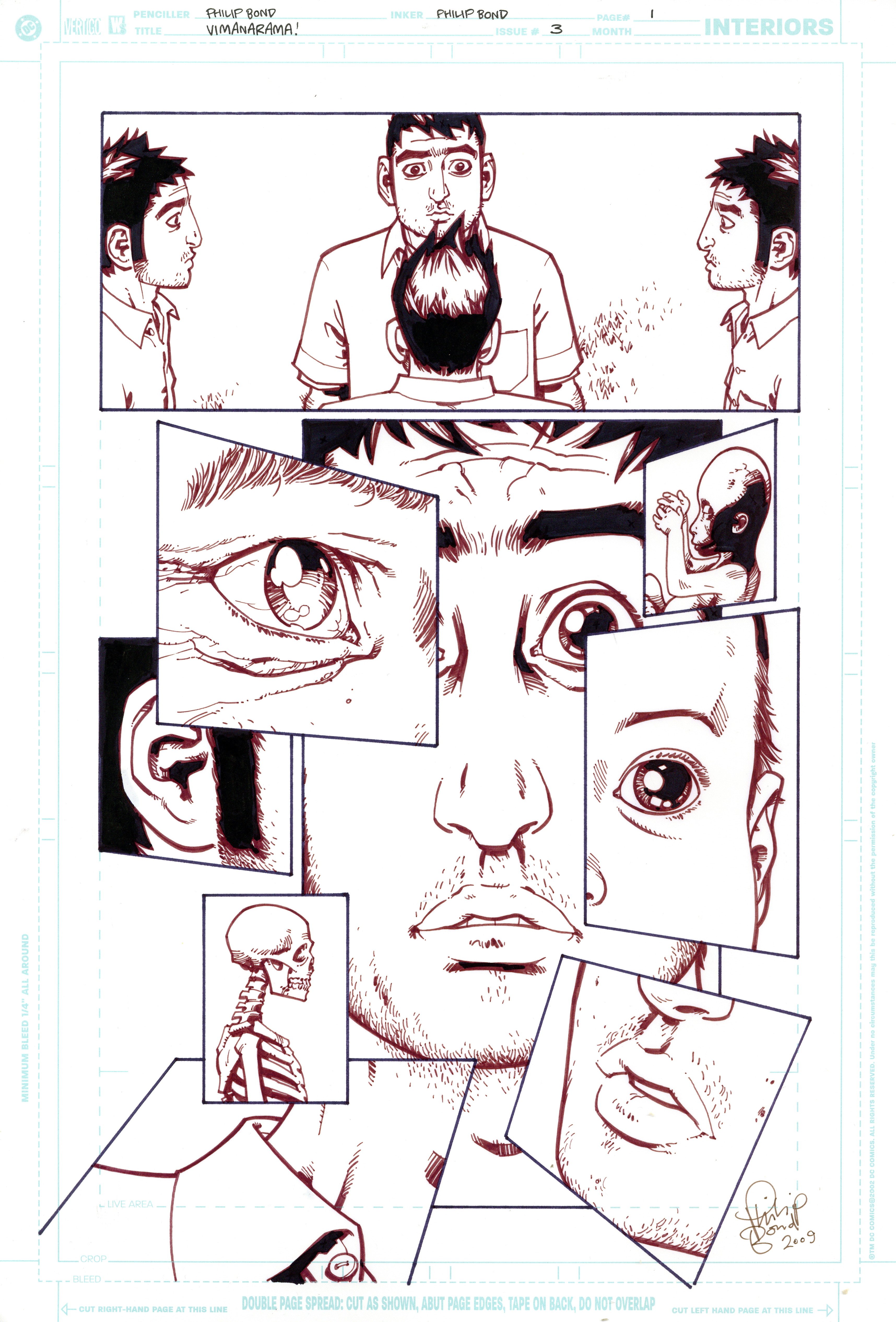 Original art for Vimanarama (2005) #3, page 1 by Philip Bond. Signed by the artist. Pencil and ink on DC logo Bristol board. 11" x 17", B&W.