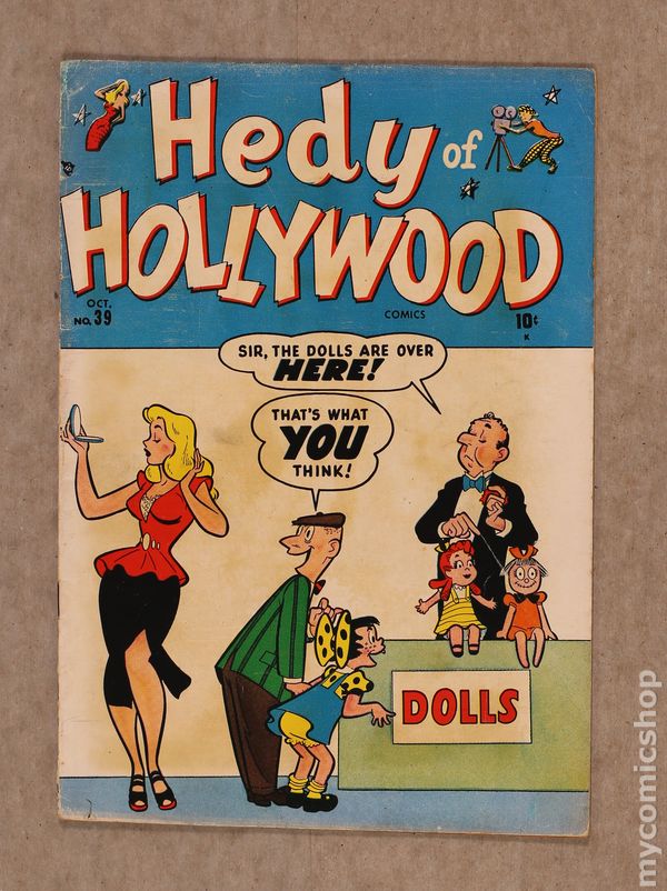 Stories by unknown. Art by unknown. Hedy De Vine stars in: "Hedy's Boomerang Vacation!"; "The Faked-up Make-up!"; and "Hollywood, I Love You!" Also in this issue: two untitled Frankie Fuddle 1-pagers, and Jeanie in "Service with a Smile!" 32 pages, full color. Cover price $0.10. Grade: GD 2.0 explanation of grade Condition: Used (collectible)