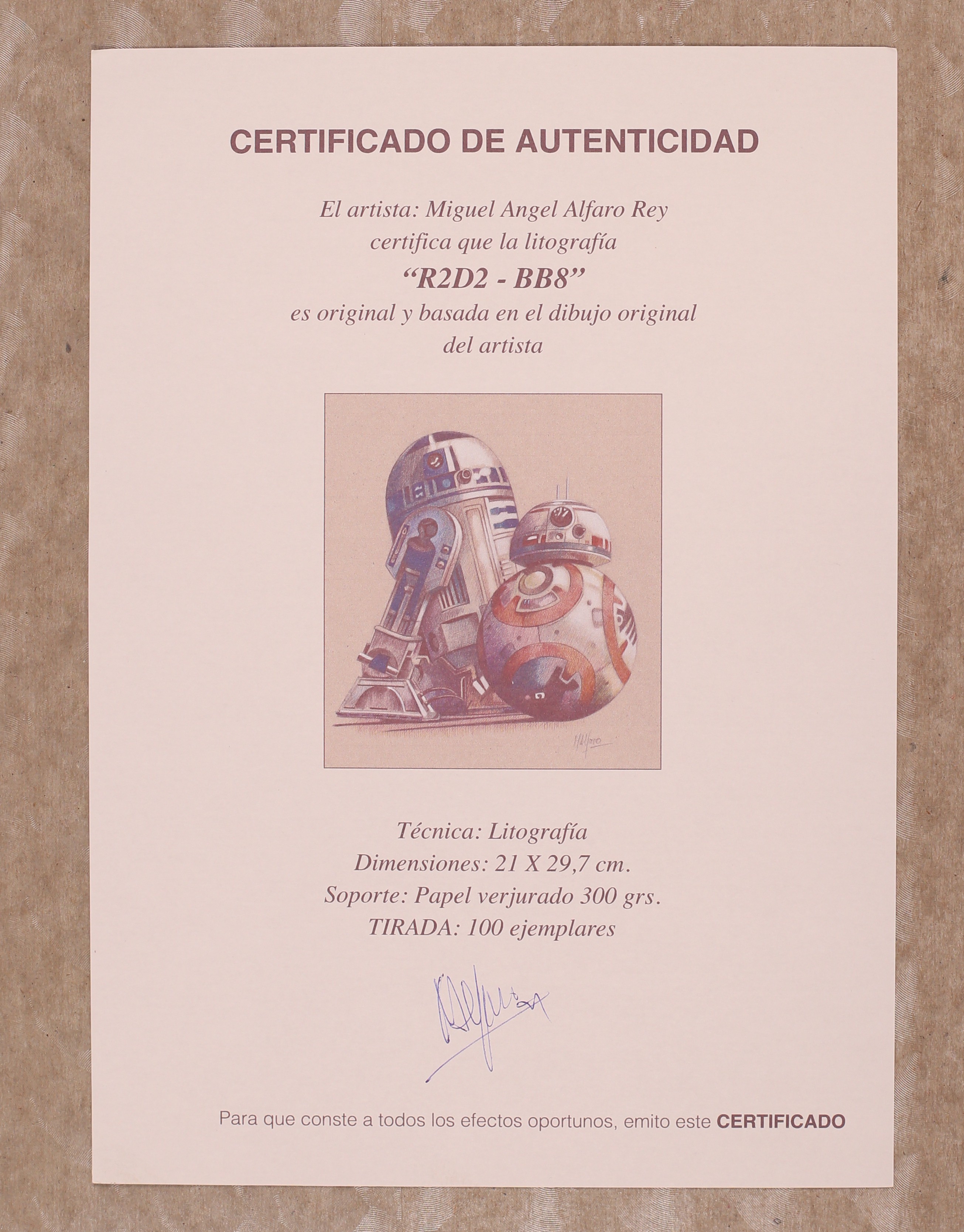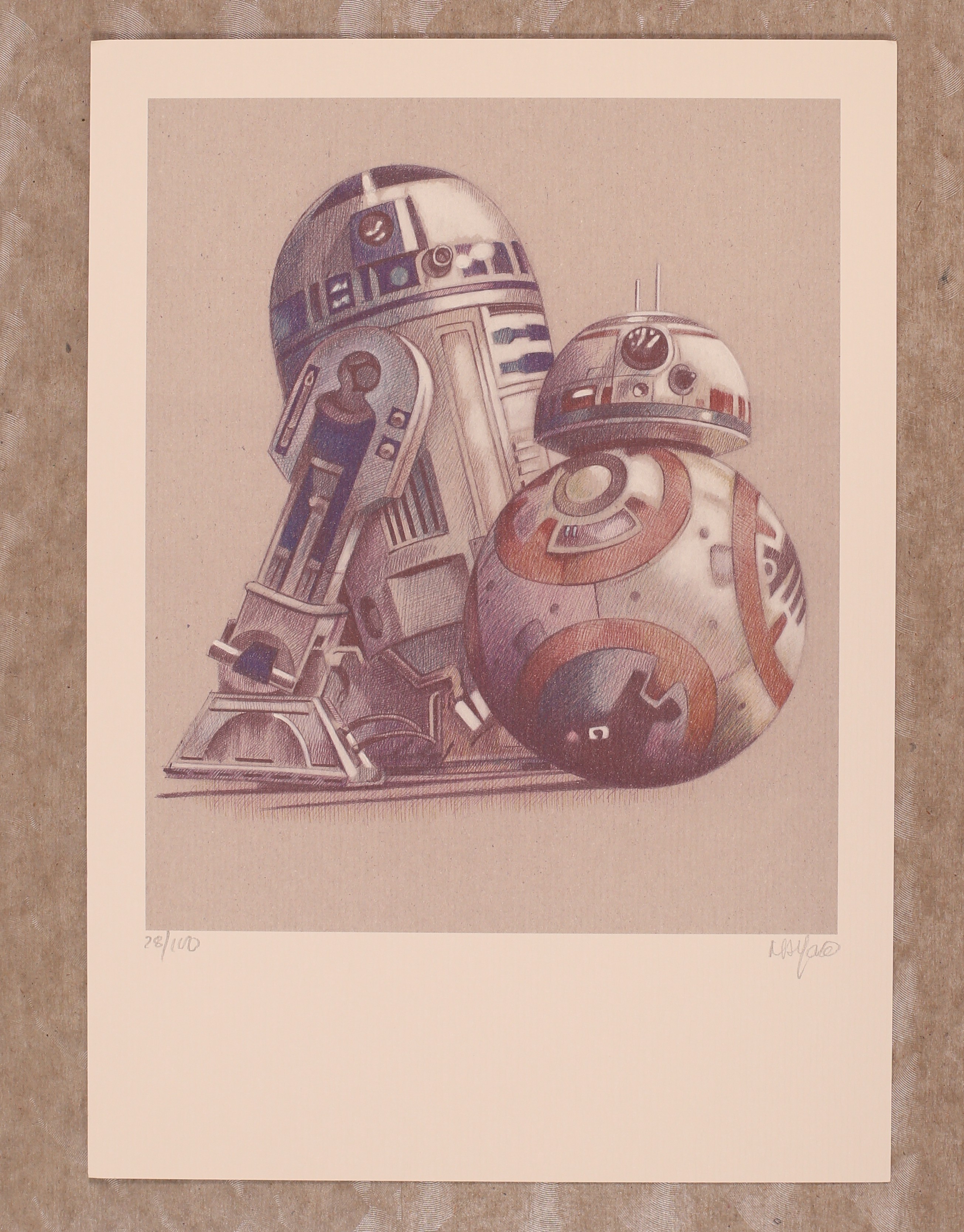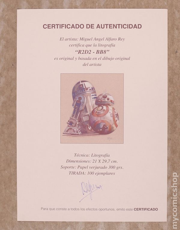 R2-D2 and BB-8 Print by Miguel Angel Alfaro Rey. Signed by the artist. High quality print on heavy stock. Includes certificate of authenticity. 8 1/4" x 11 3/4", full color.