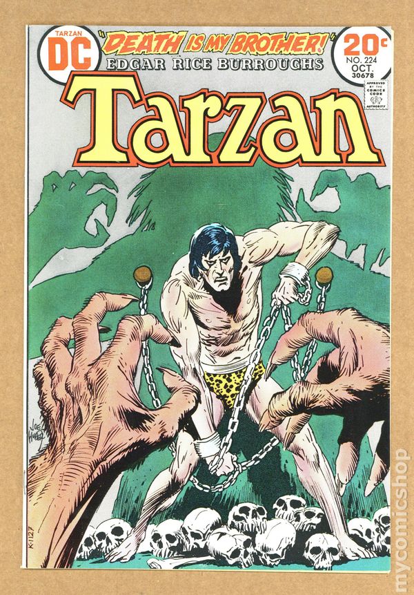 Cover by Joe Kubert. Death Is My Brother!, script and art by Joe Kubert; Tarzan journeys to Opar and resuces La from Kla, the high priest. Tarzan's Animal Encyclopedia; the cicada and the owl. Tarzan's Animal Encyclopedia, the chimp and the elephant. 36 pgs., full color. $0.20. Cover price $0.20. Grade: VF/NM 9.0 explanation of grade Condition: Used (collectible)