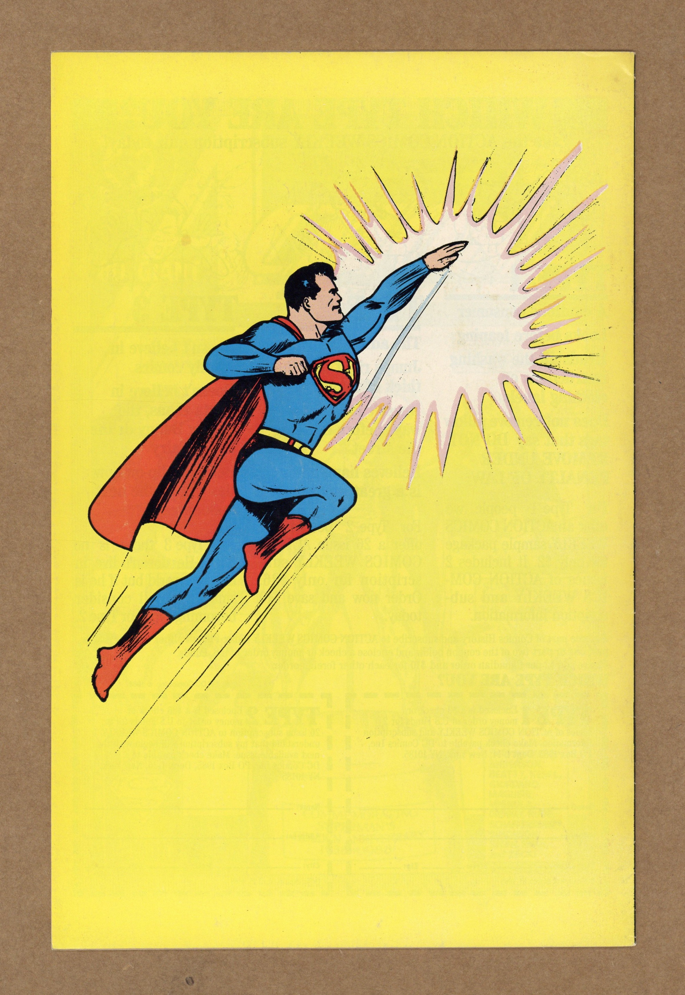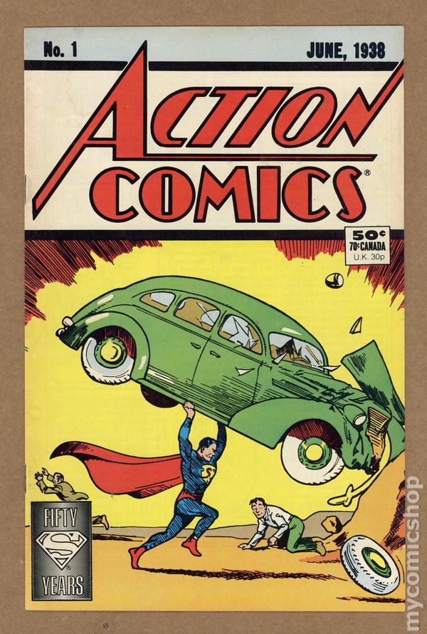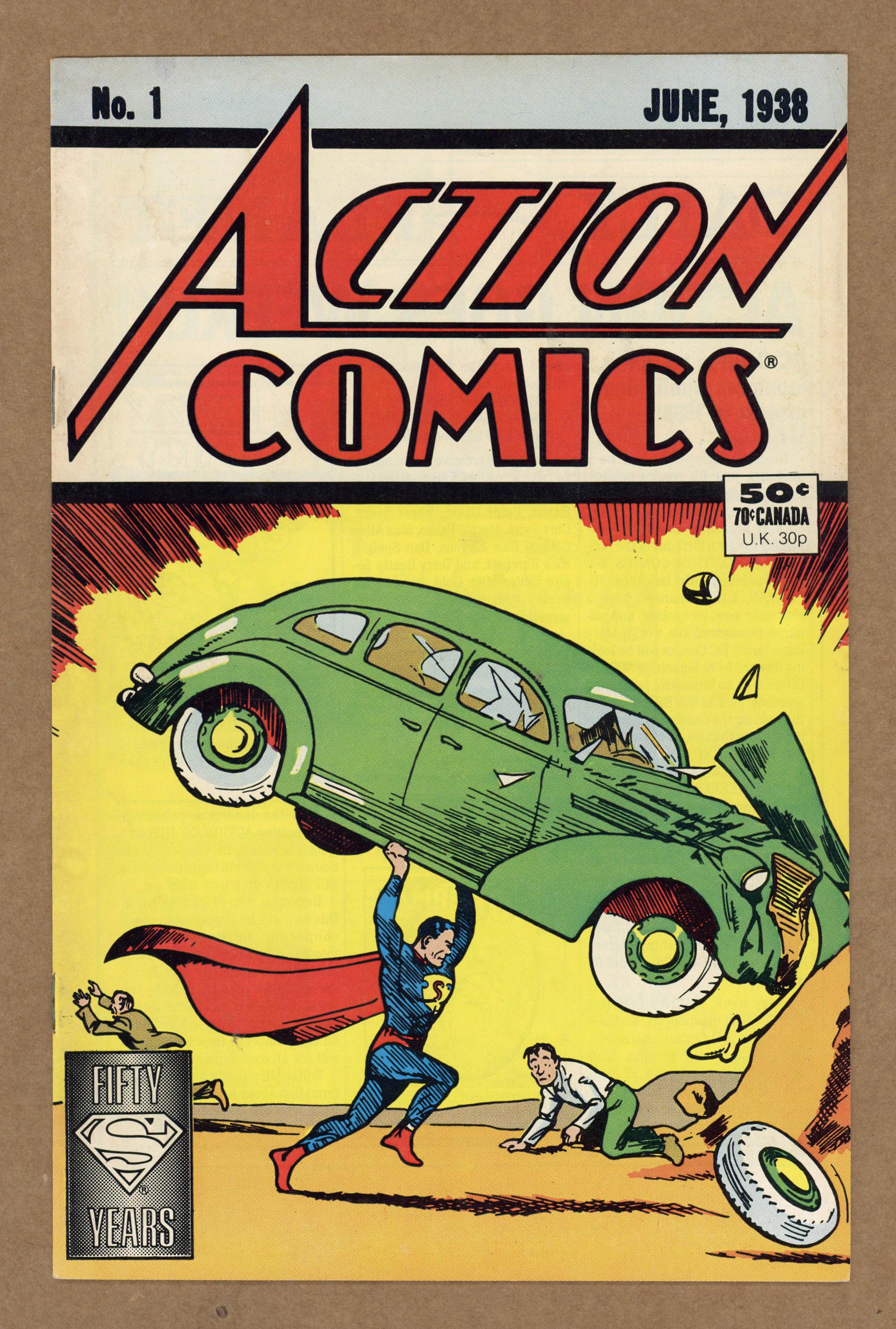 Direct Sales Edition. 16-page reprint of Action #1. 1988 reprint 50 cent cover price. Cover price $0.50. Grade: VG+ 4.5 explanation of grade Condition: Used (collectible)