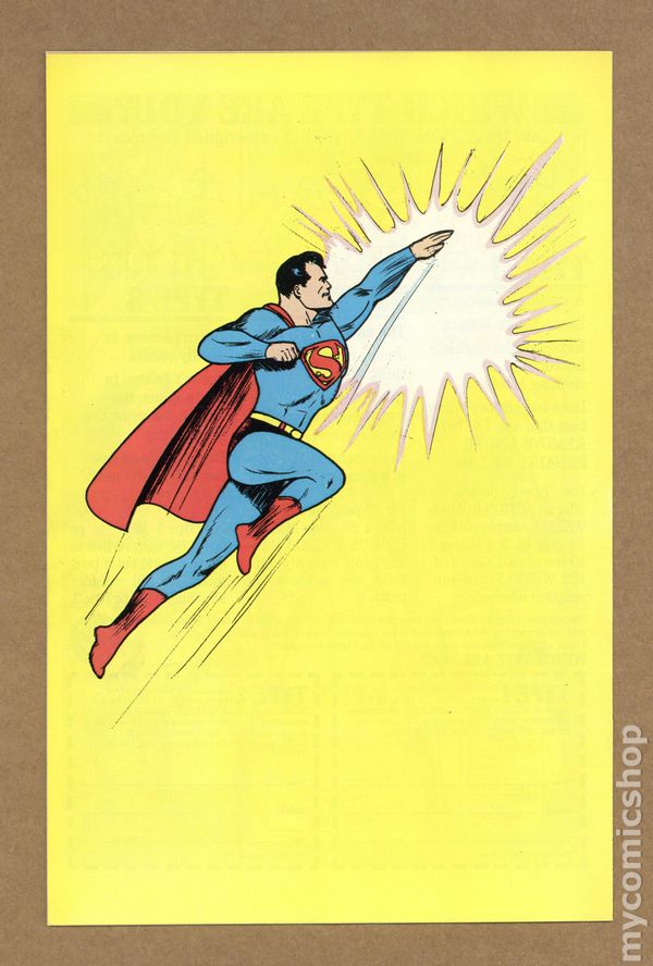Direct Sales Edition. 16-page reprint of Action #1. 1988 reprint 50 cent cover price. Cover price $0.50. Grade: FN/VF 7.0 explanation of grade Condition: Used (collectible)