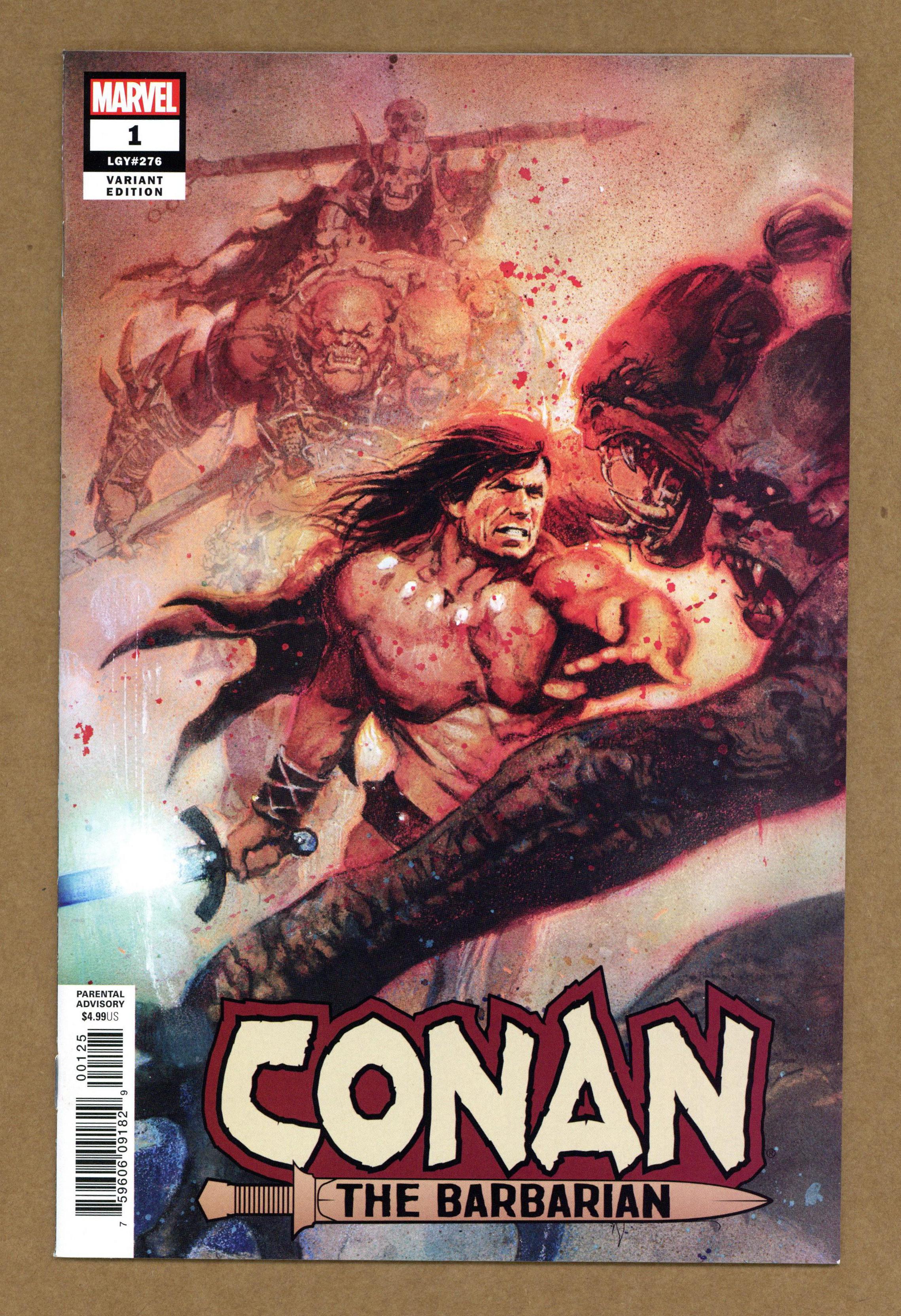 Ended May 14 2020 Winning Bid $48 Limited 1 for 200 Retailer Incentive Variant Cover. Written by Jason Aaron. Art by Mahmud A. Asrar. Cover by Bill Sienkiewicz. BY CROM, THE GREATEST SWORD-AND-SORCERY HERO RETURNS TO MARVEL! From an age undreamed…hither came Conan the Cimmerian, black-haired, sullen-eyed, sword in hand, a thief, a reaver, a slayer, with gigantic melancholies and gigantic mirth, to tread the jeweled thrones of the Earth under his sandaled feet… Robert E. Howard's creation returns to comics, in an epic tale as only MARVEL could bring you! Conan's travels have brought him to the far reaches of the unkown, from his birthplace in Cimmeria to the kingdom of Aquilonia and all in between. As his fighting prowess allows him to carve his way through life, so too does it attract the forces of death! The all-new ages-spanning saga begins here, by writer Jason Aaron (THE MIGHTY THOR, STAR WARS) and artist Mahmud Asrar (UNCANNY X-MEN, ALL-NEW, ALL-DIFFERENT AVENGERS), as Conan's destiny is forever changed! 48 pages, full color. Parental Advisory Cover price $4.99. Grade: NM- 9.2 explanation of grade Condition: Used (collectible)