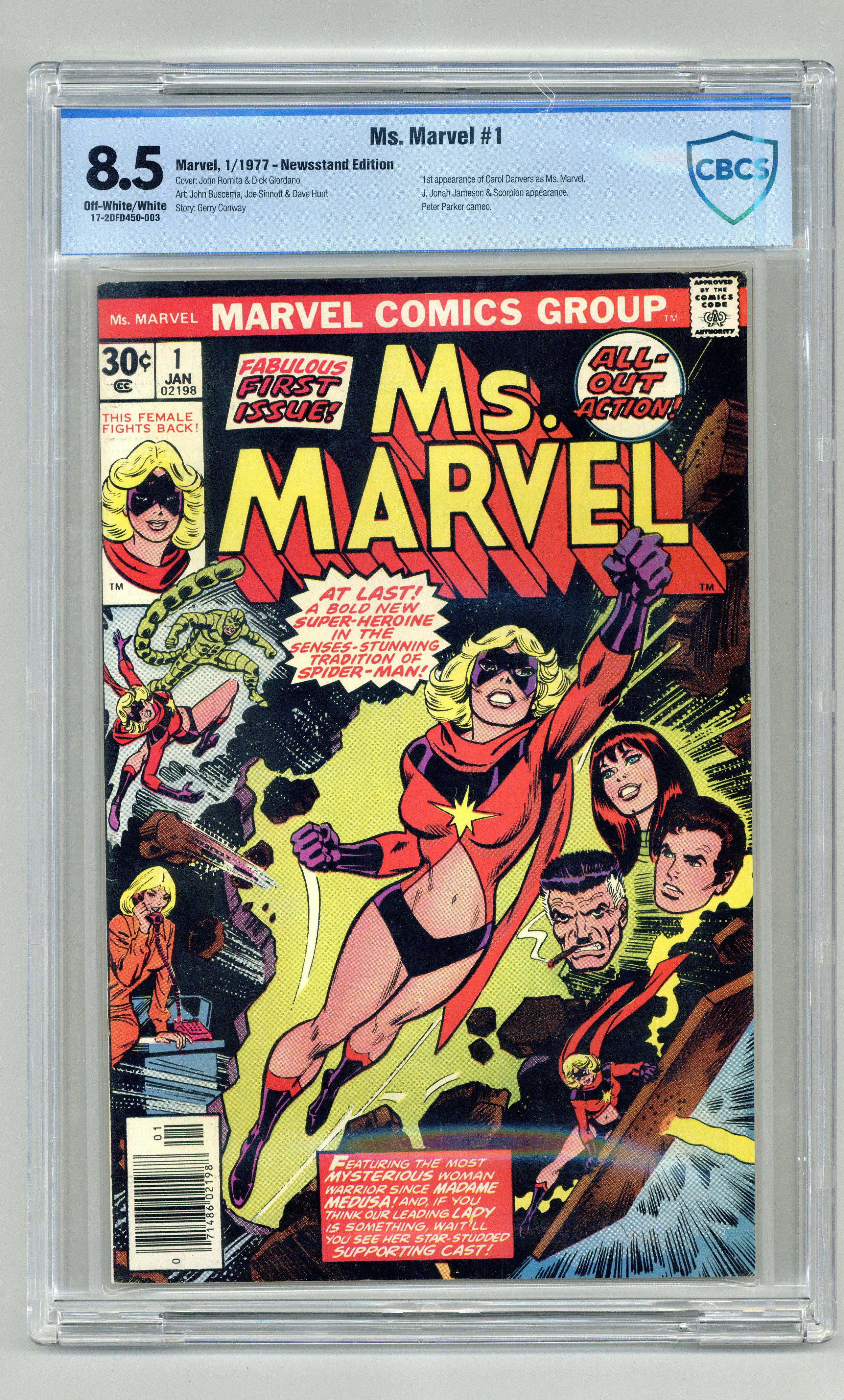 John Romita/Dick Giordano cover. John Buscema art. Gerry Conway script. Joe Sinnott/David Hunt inks. Marie Severin colors. "This Woman, This Warrior" Carol Danvers meets Peter Parker, J. Jonah Jameson, Mary Jane Watson, and battles the Scorpion when she gets a job at the Daily Bugle as a fashion editor. Intro Ms. Marvel, Carol Danvers, who last appeared in Captain Marvel # 40. 1st appearance of Ms Marvel. 36 pages, full color. Cover price $0.30. Grade: CBCS 8.5 explanation of grade Condition: Used (collectible)