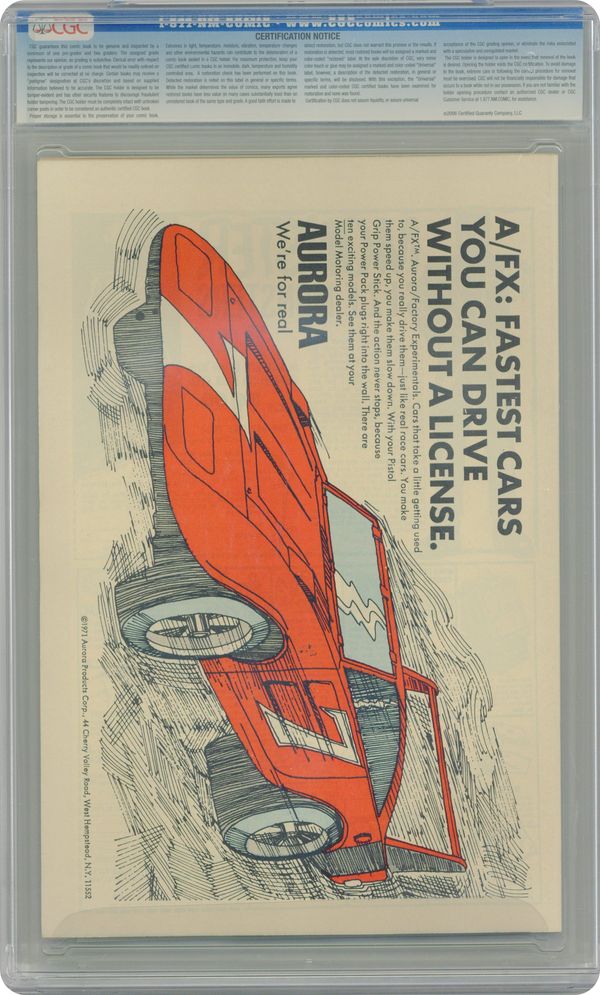 52-page giant. "The Worm That Turned Into Terror" (script by Darl Wessler, art by Jerry Grandenetti); "The Diggers!" (script by Bob Haney, pencils by Bob Brown, inks by Frank Giacoia); "When Satan Comes A-Creeping!" (script by George Kashdan, pencils by John Calnan, inks by Vince Colletta); and a one-page story, "Hypnotic Eye" (art by Jim Aparo). Reprint back-up stories: "The Face Behind the Mask" (script by Ed Herron, art by Jack Kirby) and "I Was a Prisoner of the Supernatural" (script by Fran Herron, art by Nick Cardy). 52 Pages, Full Color. Cover price $0.25. Grade: CGC 9.4 explanation of grade Condition: Used (collectible)