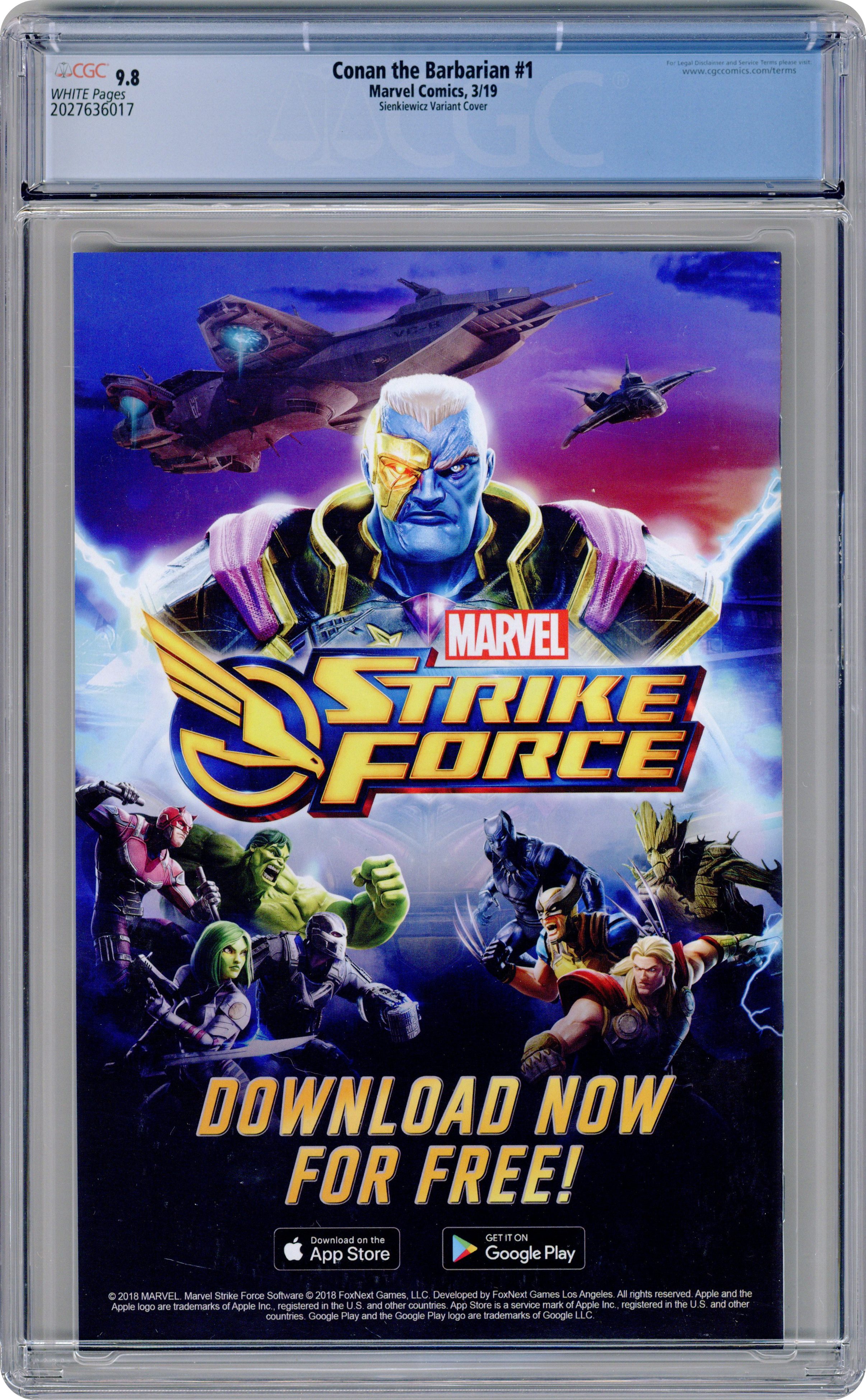 Ended Oct 30 2019 Winning Bid $107 Limited 1 for 200 Retailer Incentive Variant Cover. Written by Jason Aaron. Art by Mahmud A. Asrar. Cover by Bill Sienkiewicz. BY CROM, THE GREATEST SWORD-AND-SORCERY HERO RETURNS TO MARVEL! From an age undreamed…hither came Conan the Cimmerian, black-haired, sullen-eyed, sword in hand, a thief, a reaver, a slayer, with gigantic melancholies and gigantic mirth, to tread the jeweled thrones of the Earth under his sandaled feet… Robert E. Howard's creation returns to comics, in an epic tale as only MARVEL could bring you! Conan's travels have brought him to the far reaches of the unkown, from his birthplace in Cimmeria to the kingdom of Aquilonia and all in between. As his fighting prowess allows him to carve his way through life, so too does it attract the forces of death! The all-new ages-spanning saga begins here, by writer Jason Aaron (THE MIGHTY THOR, STAR WARS) and artist Mahmud Asrar (UNCANNY X-MEN, ALL-NEW, ALL-DIFFERENT AVENGERS), as Conan's destiny is forever changed! 48 pages, full color. Parental Advisory Cover price $4.99. Grade: CGC 9.8 explanation of grade Condition: Used (collectible)