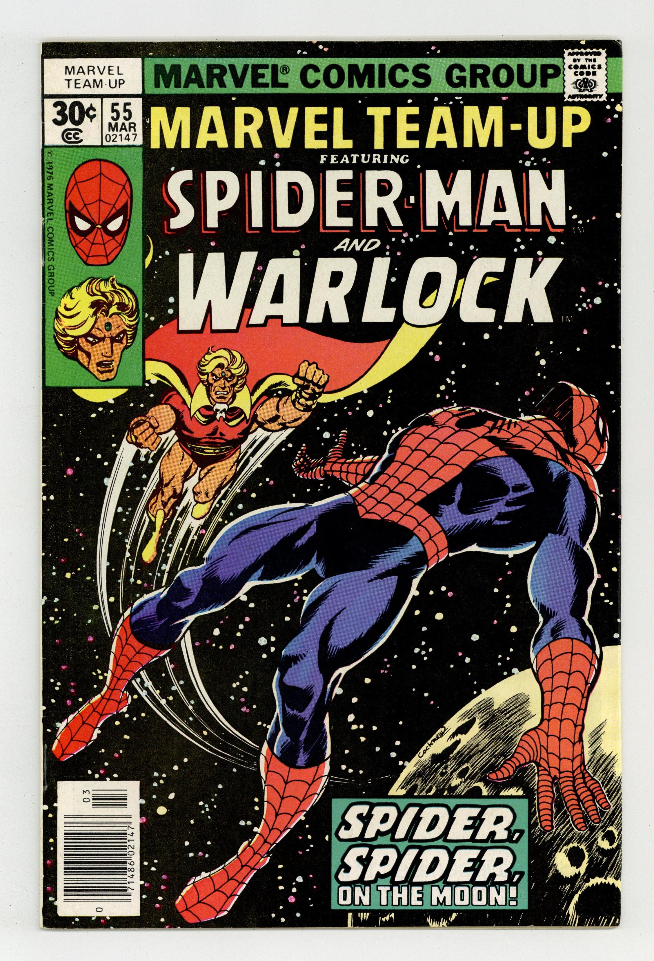 "Spider, Spider on the Moon!" Part 3 of 3. Guest-starring Spider-Man and Adam Warlock. Script by Bill Mantlo. Pencils by John Byrne. Inks by Dave Hunt. Cover by Dave Cockrum After narrowly escaping from Tranquility Base in New Mexico, a semi-conscious wall-crawler rockets into outer space on a spaceship rapidly leaking oxygen! But a celestial Good Samaritan saves him and takes the web-slinger to the blue area of the moon. Spider-Man and Adam Warlock are having a pleasant conversation when all of a sudden, the Stranger attacks! What does the cosmic giant want from Warlock? And is there another cosmic being on the moon to help the two heroes battle the Stranger? Cameo appearances by the Hulk and Woodgod. (Notes: The letters page includes a letter from comics cartoonist Fred Hembeck. The mysterious silver egg on the final panel appears again in Iron Man 109. 1st appearance of the Gardener and the 1st appearance of the Power Gem and the Time Gem (later parts of the Infinity Gauntlet). 36 pgs. Cover price $0.30. Grade: FN+ 6.5 explanation of grade Condition: Used (collectible)
